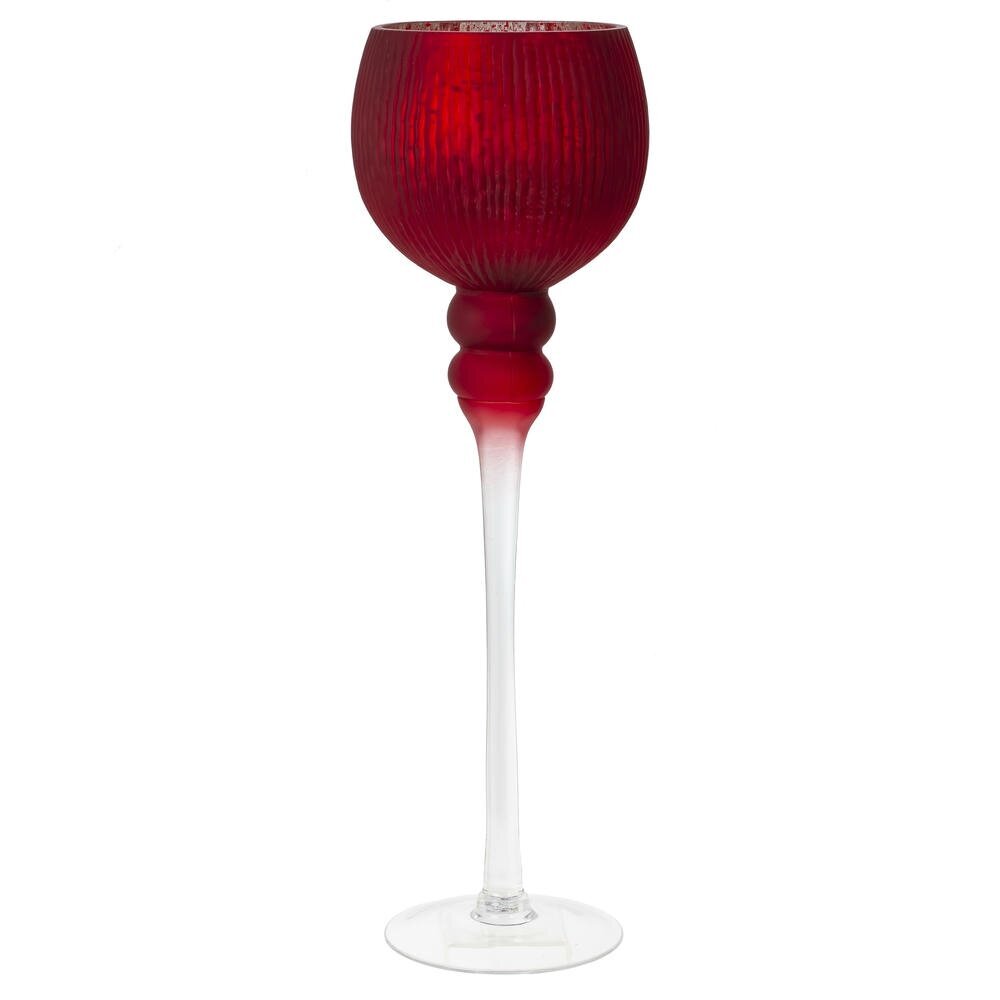 Набор из 3 стеклянных подсвечников в виде элегантных бокалов на высоких прозрачных ножках. Чаши глубокого бордово-красного цвета с матовым, рифлёным покрытием и лёгким градиентом к основанию. Разная высота элементов позволяет создавать выразительную композицию на столе, камине или подоконнике. Полупрозрачное стекло мягко рассеивает пламя, наполняя пространство тёплым рубиновым сиянием и создавая атмосферу уюта. Широкие круглые основания обеспечивают устойчивость. Подходят для чайных свечей или небольших свечей-таблеток. Идеальный акцент для праздничной сервировки, романтического вечера или современной гостиной. Легко сочетаются с сезонным декором и станут удачным подарком для ценителей стильных деталей интерьера. Размеры подсвечников: L12 W12 H30/35/40 см.