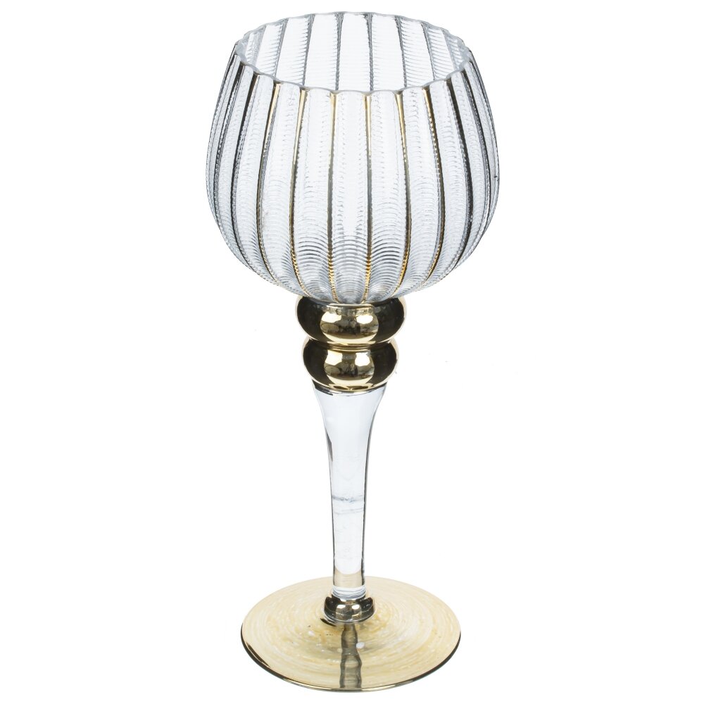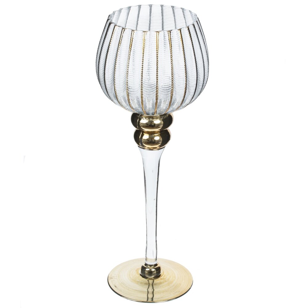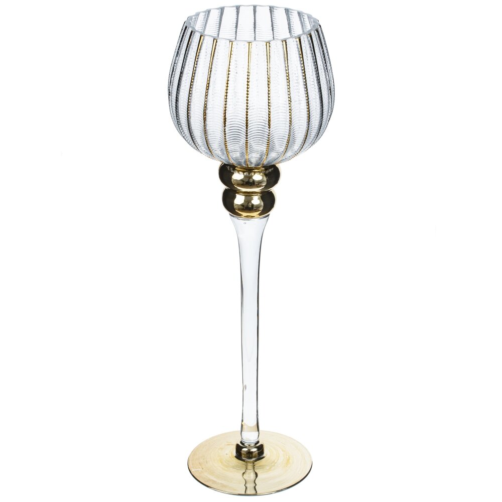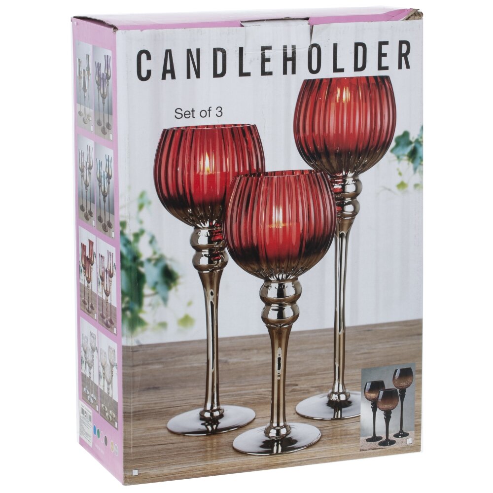 Набор из трех оригинальных стеклянных подсвечников на высоких ножках - прекрасный аксессуар для оформления праздничного стола. Он дополнит сервировку стола, подойдет для романтического вечера, или, просто украсит ваш дом. Размеры подсвечников: 12*12*40/35/30 см. Для свечи, диаметром 6 см.