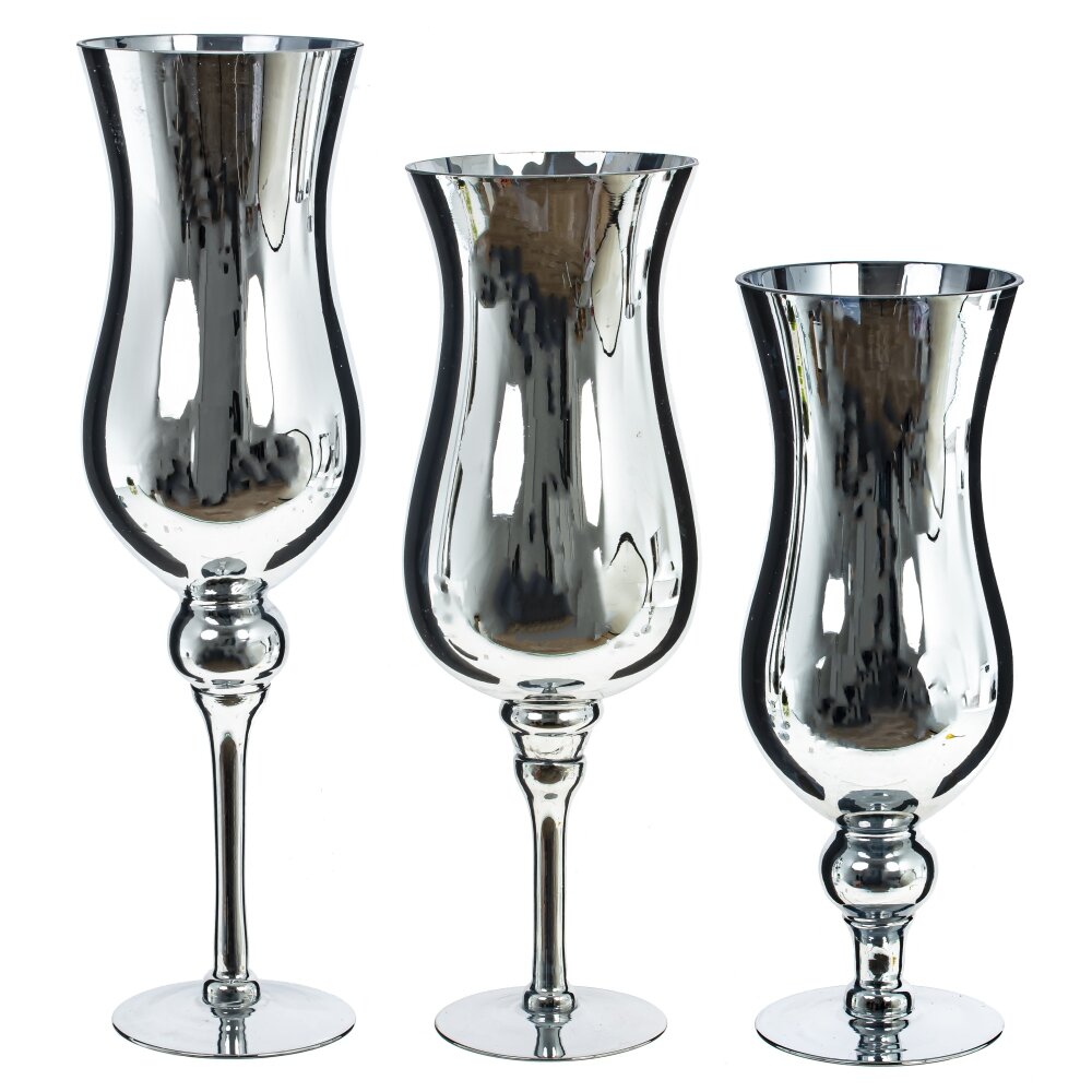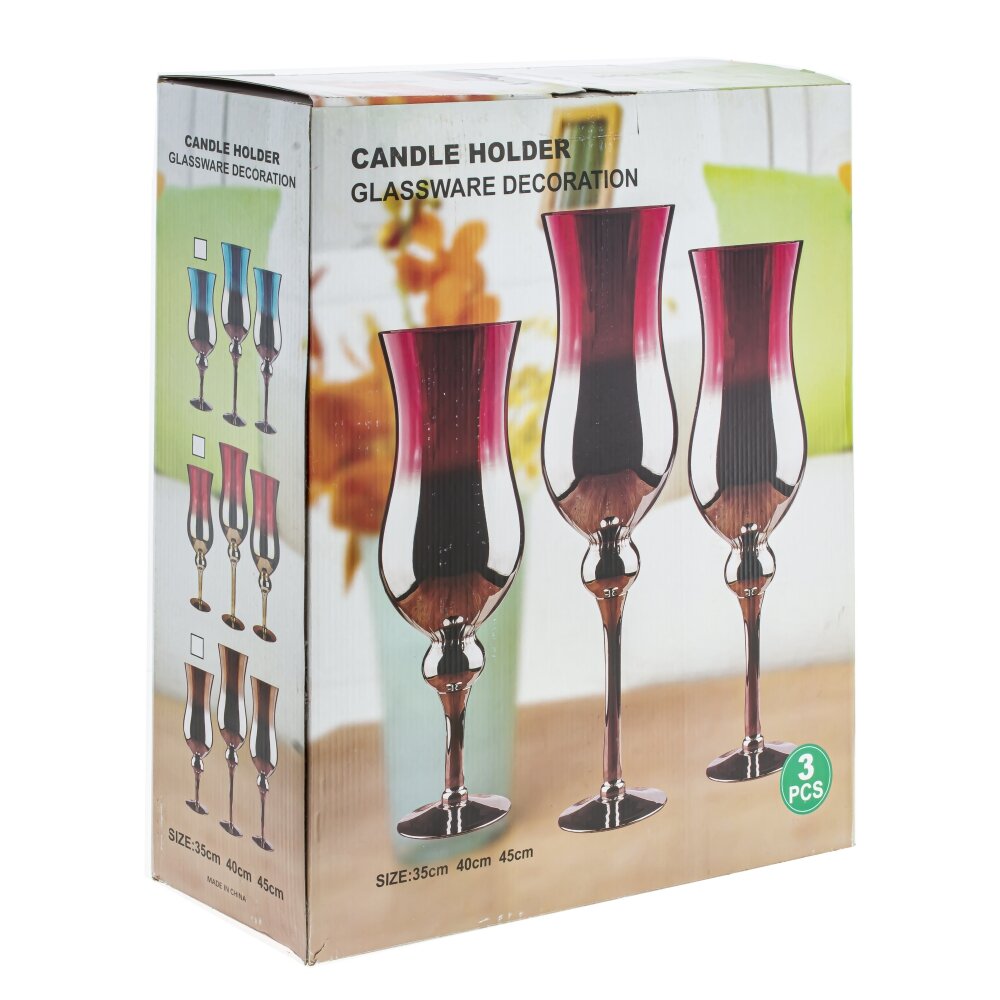 Набор из трех оригинальных стеклянных подсвечников на высоких ножках - прекрасный аксессуар для оформления праздничного стола. Он дополнит сервировку стола, подойдет для романтического вечера, или, просто украсит ваш дом. Размеры подсвечников: 13*13*45/40/35 см. Для свечи диаметром 6 см.
