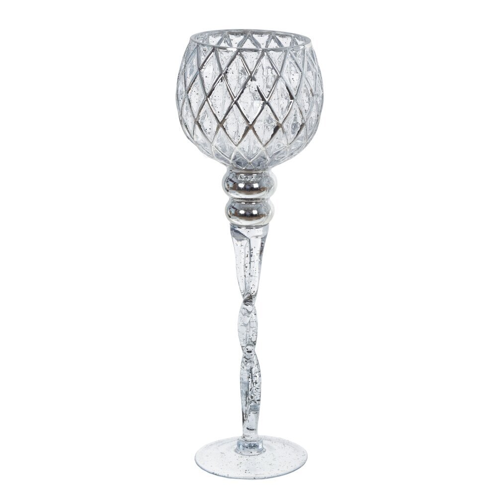 Набор из трех оригинальных стеклянных подсвечников на высоких ножках - прекрасный аксессуар для оформления праздничного стола. Он дополнит сервировку стола, подойдет для романтического вечера, или, просто украсит ваш дом. Размеры подсвечников: 13*13*40/35/30 см. Для свечи, диаметром 7 см.