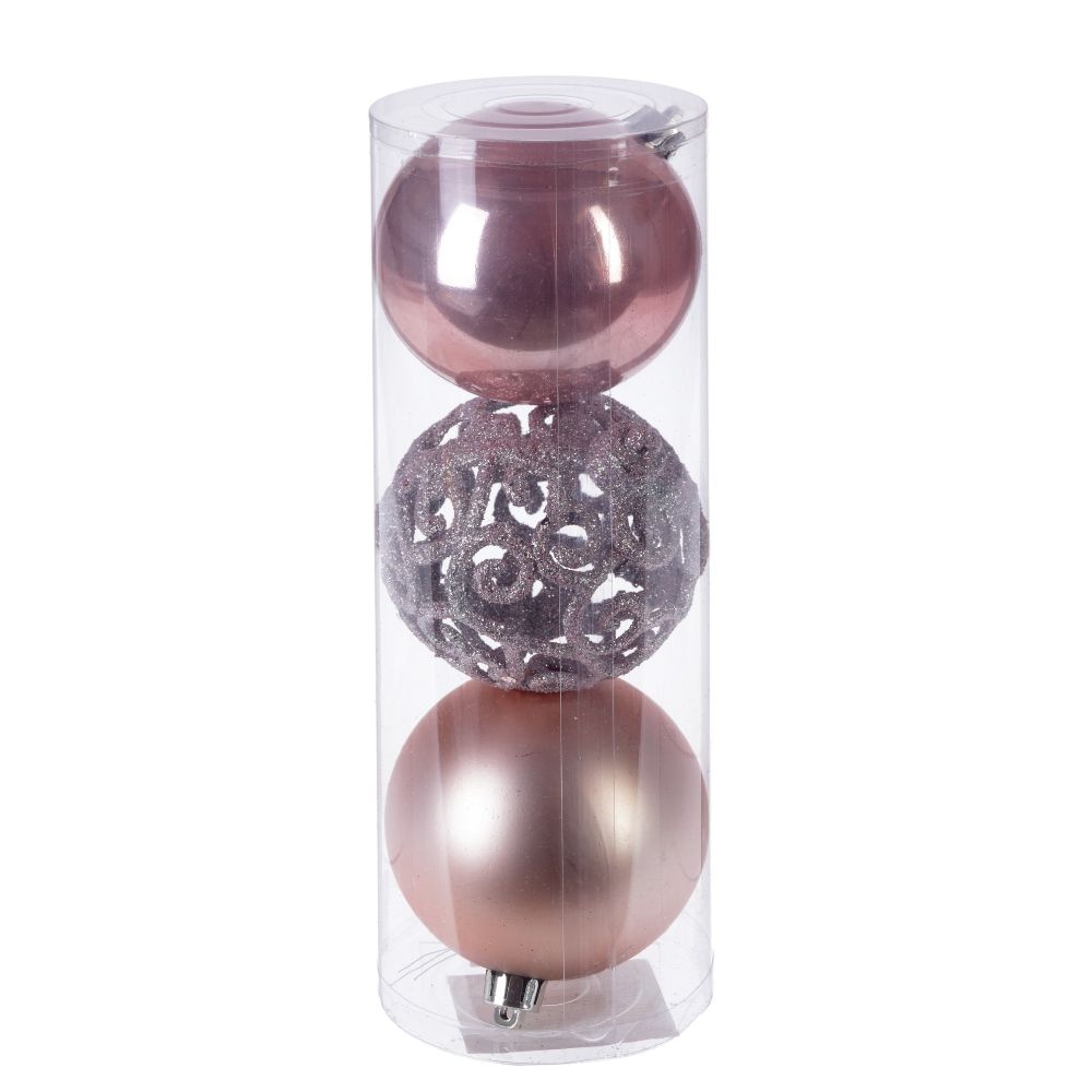 Набор из 3-х елочных шаров выполнен в единой цветовой гамме. В составе набора - пластиковые украшения разной фактуры - глянцевые, матовые и ажурные с глиттером. Прекрасно смотрятся в убранстве новогодней ели. Поставлются в прозрачной пластиковой упаковке.