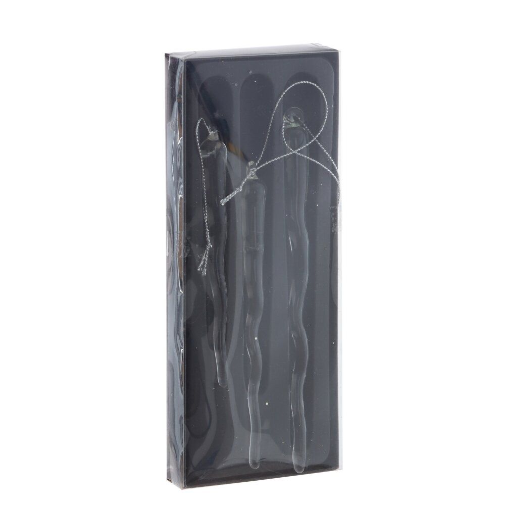 Набор из трех стеклянных сосулек разного размера 12, 14,5 и 17,5 см. Прозрачные сосульки очаровывают своей изящной формой спирали. Их игривая игра света создаст атмосферу волшебства и праздника в вашем доме. Идеальны для украшения новогодней ели, декора окна или настольных композиций. Этот набор станет изысканным акцентом вашего праздничного интерьера, добавляя нотку элегантности и зимней свежести. Легкие и воздушные, сосульки прекрасно сочетаются с любыми украшениями, создавая неповторимую атмосферу уюта и волшебства.
