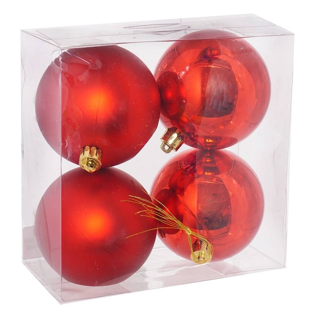 Набор из четырех елочных шаров, диаметром 8 см. В составе набора - пластиковые шары разной фактуры - глянцевые и матовые. Прекрасно смотрятся в убранстве новогодней ели. Поставляются в прозрачной пластиковой упаковке.
