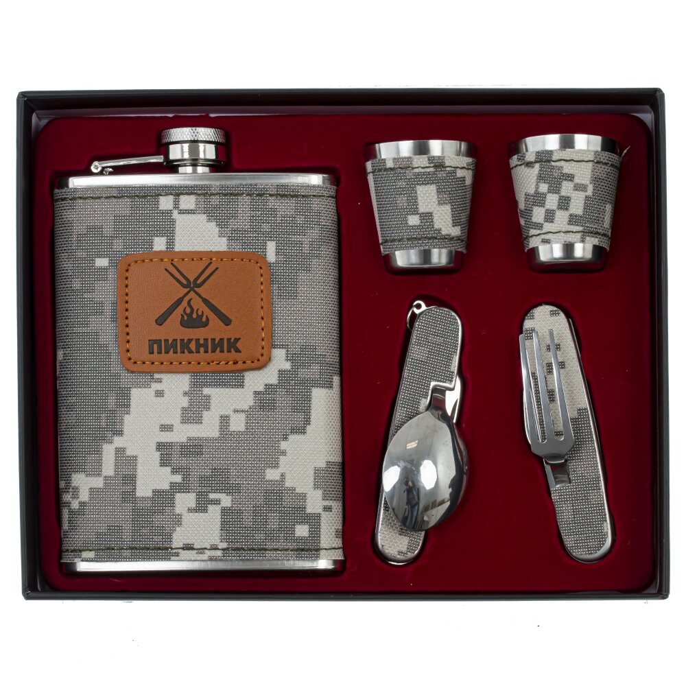 Удобный и компактный набор из 5-ти предметов, который станет отличным спутником для вас в любых походах, путешествиях или прогулках на природе. Фляжка вмещает до 250 мл жидкости и изготовлена из высококачественной коррозионностойкой стали, что обеспечивает долговечность и надежность использования. Две стопки объемом 50 мл каждая позволят вам наслаждаться напитками и делиться ими со своими близкими или друзьями. В наборе также предусмотрены вилка и ложка, выполненные из высококачественной коррозионностойкой стали. Они оказываются незаменимыми аксессуарами при приеме пищи на природе, обеспечивая удобство и комфорт при еде. Выбирая этот набор, вы получаете надежное и удобное решение для путешествий и отдыха на природе, которое будет служить вам долгое время.