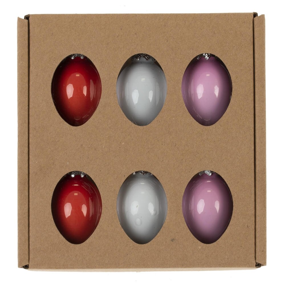 Набор из 6 декоративных подвесных изделий «Яйцо пасхальное» – стильное украшение для праздничного интерьера. Изящные стеклянные яйца выполнены в нежной палитре: красный, бело-серый и розовый цвета гармонично сочетаются между собой и легко вписываются в любой декор. Каждое изделие оснащено серебристым металлическим колпачком с петелькой для подвешивания — их удобно размещать на веточках, пасхальных композициях, декоративных деревцах, гирляндах или в оформлении подарков. Гладкая глянцевая поверхность красиво отражает свет и создаёт ощущение легкости и утончённости. Такой набор станет удачным решением для оформления дома к Пасхе, фотозоны, витрины магазина или праздничного стола, а также оригинальным подарком для любителей сезонного декора.