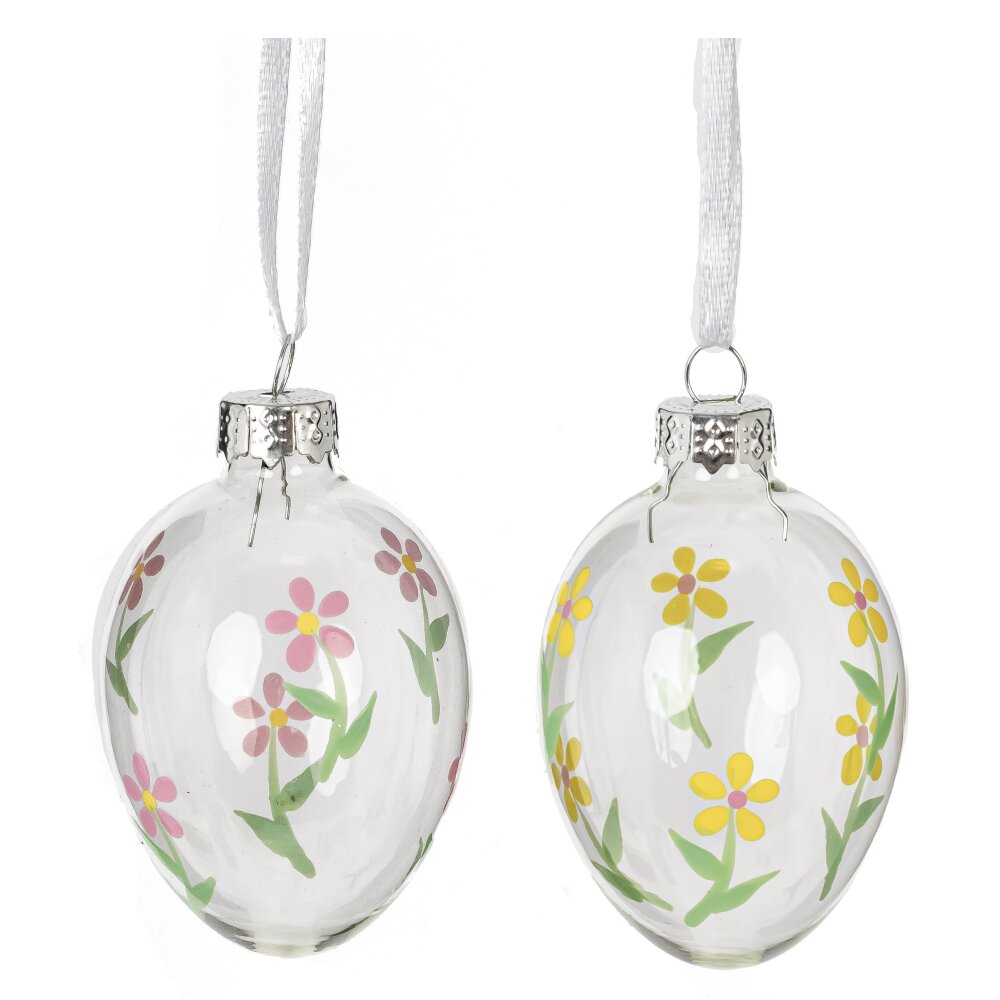 Набор из 6-ти декоративных подвесных яиц — это идеальное украшение для вашего пасхального интерьера. Каждое яйцо размером 3,5*6,5 см выполнено из прозрачного стекла и изысканно декорировано нежными цветочными узорами, которые придают изделиям легкость и элегантность. Эти яйца будут прекрасно выглядеть на ветке или праздничном дереве, создавая атмосферу весеннего пробуждения и радости. Этот набор станет замечательным акцентом в вашем доме, а также прекрасным подарком для друзей и близких.