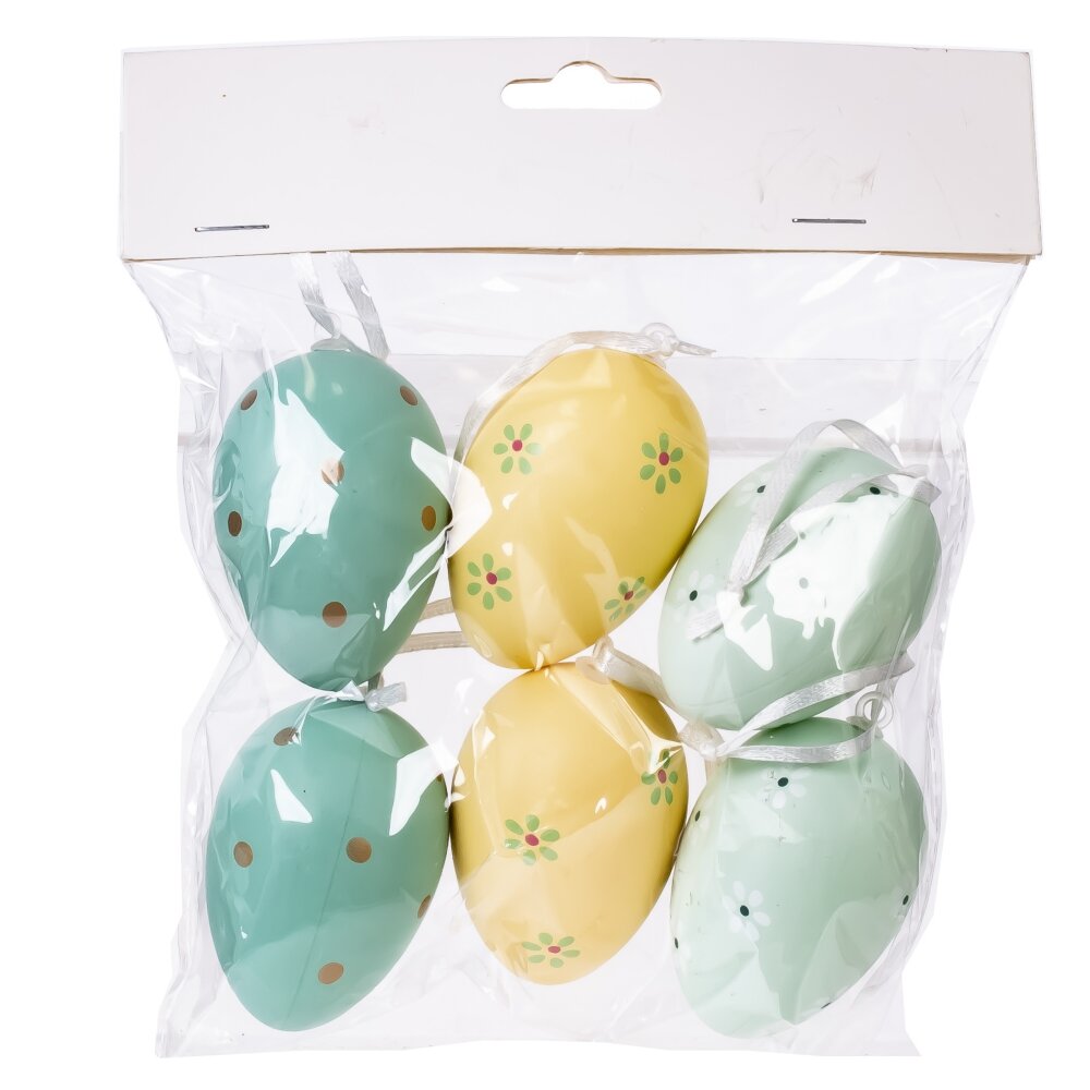 Набор из 6-ти декоративных подвесных изделий «Яйцо» – нежное пасхальное украшение для вашего дома. В комплект входят яйца пастельных оттенков: мятный, нежно-желтый и светло-бирюзовый. Поверхность декорирована аккуратными цветочками и контрастными горошинами, что создаёт праздничное, но при этом ненавязчивое настроение. Изделия изготовлены из полимерных материалов, не бьются и надолго сохраняют яркость красок. Каждое яйцо оснащено тонкой подвесной лентой, благодаря чему их удобно размещать на веточках, пасхальных букетах, дверных венках или использовать для оформления праздничного стола и детских композиций. Размер одного яйца – 4*6 см, что позволяет гармонично вписать декор как в небольшие, так и в крупные композиции. Такой набор станет отличным решением для создания уютной весенней атмосферы и подготовки дома к празднику Пасхи.