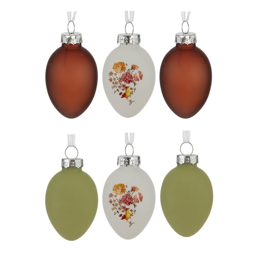 Набор из 6-ти декоративных подвесных украшений «Яйцо пасхальное» станет изысканным акцентом весеннего декора. В комплект входят стеклянные яйца в матовых оттенках тёплого коричневого и нежного зелёного, а также два светлых яйца с изящным цветочным рисунком. Каждое изделие оснащено серебристым подвесом и тонкой лентой для удобного крепления на пасхальном деревце, веточках, композициях или интерьерных гирляндах. Стекло создаёт лёгкий блеск и подчёркивает утончённую форму, добавляя празднику элегантности и уюта. Подходит для украшения дома, подарочных наборов, сервировки стола и фотозон к Пасхе.