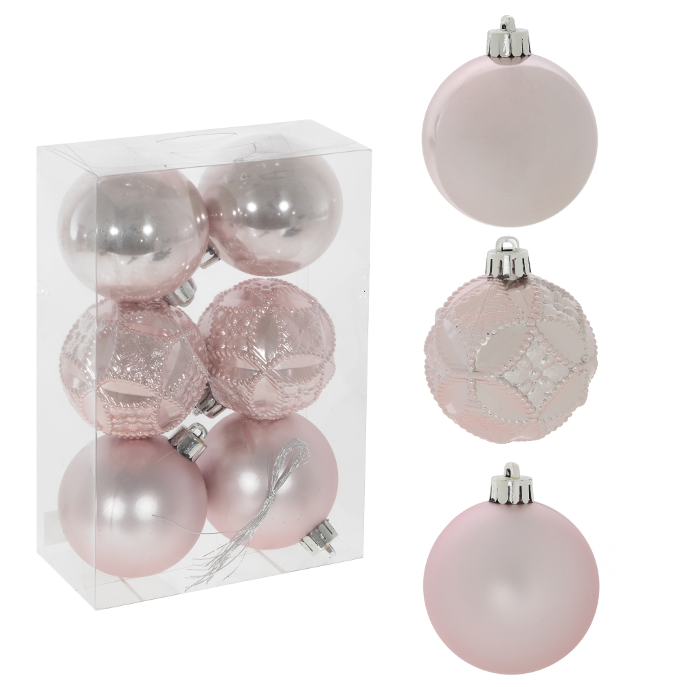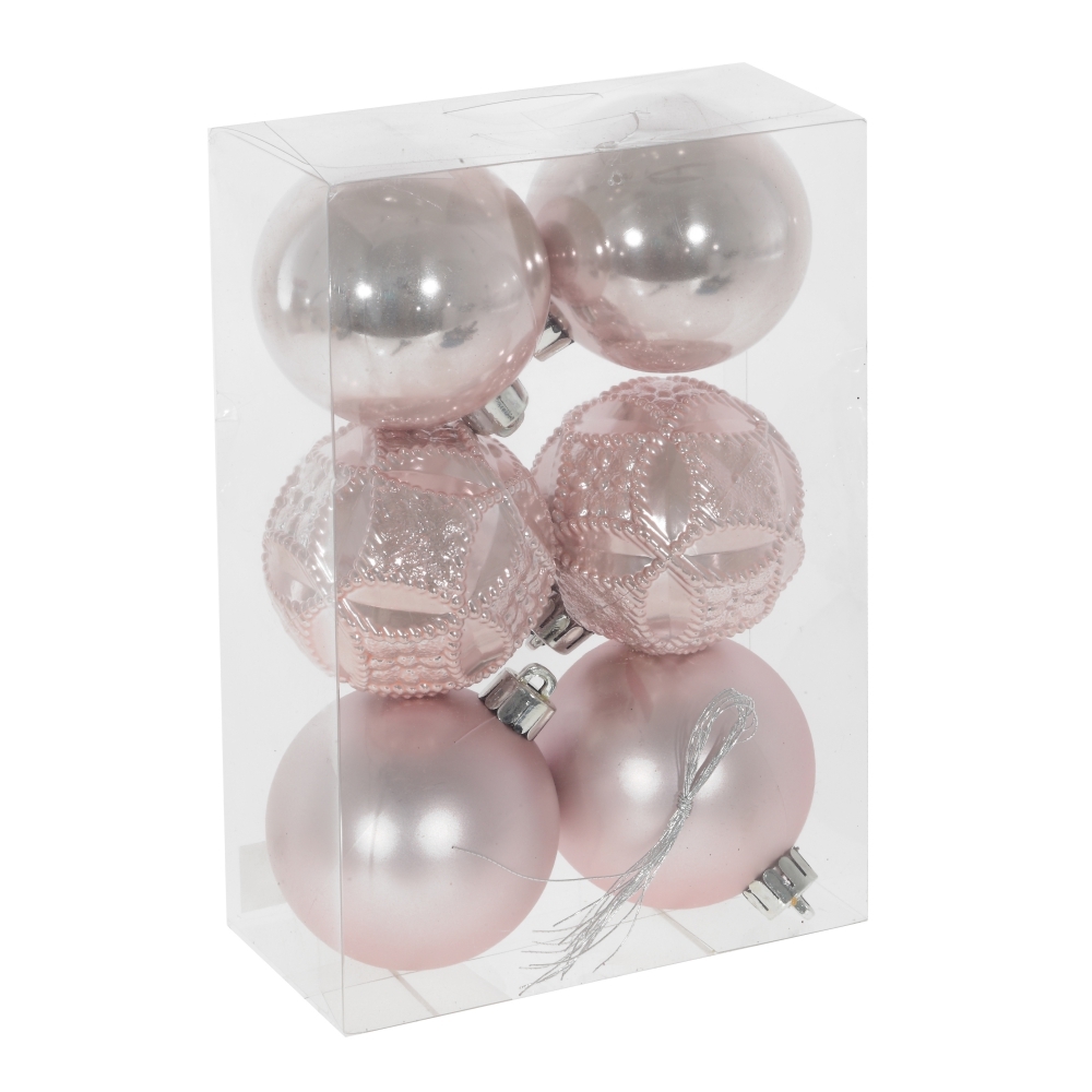 Набор из 6-ти елочных шаров выполнен в единой цветовой гамме. В составе набора - пластиковые шары разной фактуры - глянцевые, матовые, рельефные. Прекрасно смотрятся в убранстве новогодней ели. Поставляются в прозрачной пластиковой упаковке.