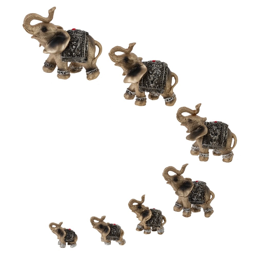 Набор из 7 декоративных фигурок "Слон" – это стильное и изысканное украшение для интерьера, выполненное из полимерных материалов. Каждая фигурка отличается утонченными деталями, изящным дизайном и декоративными элементами. Слоны символизирует единство, процветание и силу семьи. Их изогнутые вверх хоботы приносят удачу и позитивную энергию в дом. Фигурки украшены узорами и декоративными вставками, имитирующими резьбу, создавая впечатление антикварного изделия. Такой набор отлично впишется в классический или восточный стиль оформления интерьера и станет прекрасным подарком для ценителей символичных декоративных элементов.