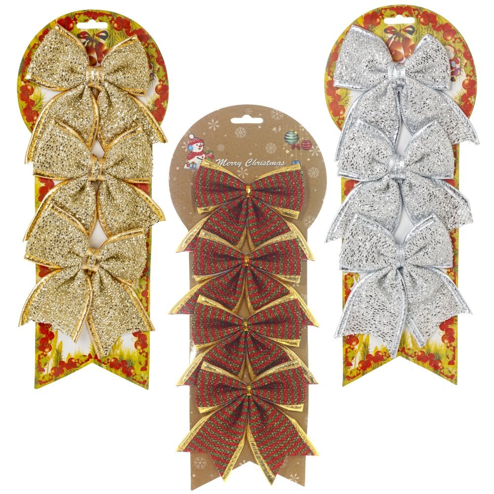 Очаровательный бант смотрится нарядно и превратит вашу лесную красавицу в королеву праздника. Может стать частью новогодней сервировки, а так же роскошно украсит хвойную композицию или подарок для близкого человека. Предаставлен в трех видах наборов: золотой, красный и серебрянный.
