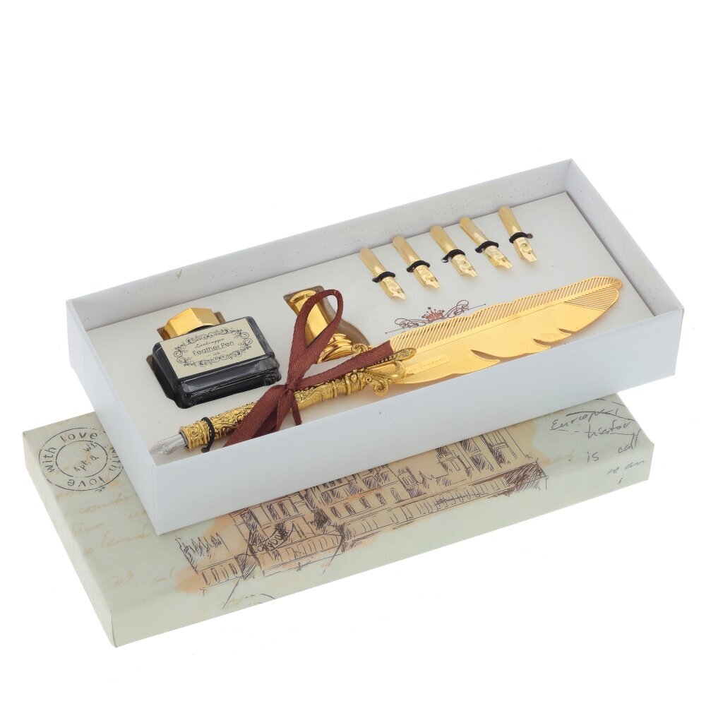 Подарочный набор идеально подходит для тех, кто ценит искусство письма и традиции каллиграфии. В этом наборе вы найдете элегантную перьевую ручку, выполненную из качественного металла, которая придает ощущение прочности и стиля. Эта ручка обеспечивает комфортное и плавное письмо, позволяя творить с легкостью и вдохновением. Стеклянная чернильница не только функциональна, но и является стильным элементом, который украсит ваш письменный стол. К набору прилагается пять сменных наконечников, которые позволяют варьировать шрифт и толщину письма, открывая широкие возможности для творчества. Практичная подставка для ручки обеспечивает удобство хранения и защищает перо от повреждений, добавляя в комплект нотку элегантности. Этот подарочный набор станет отличным подарком для студентов, писателей или любителей книг, а также подчеркнёт вашу индивидуальность и любовь к искусству.