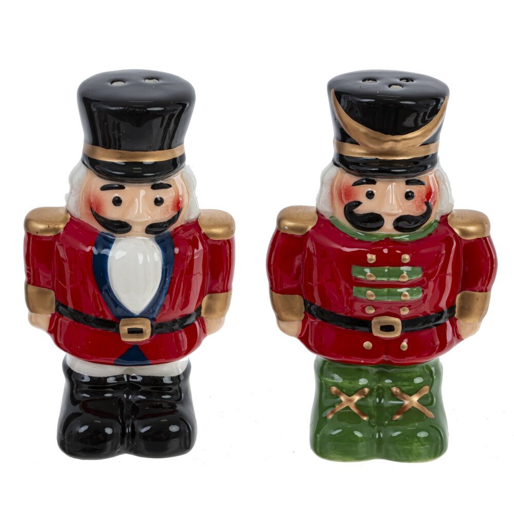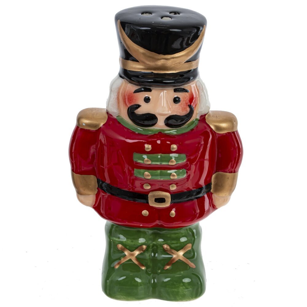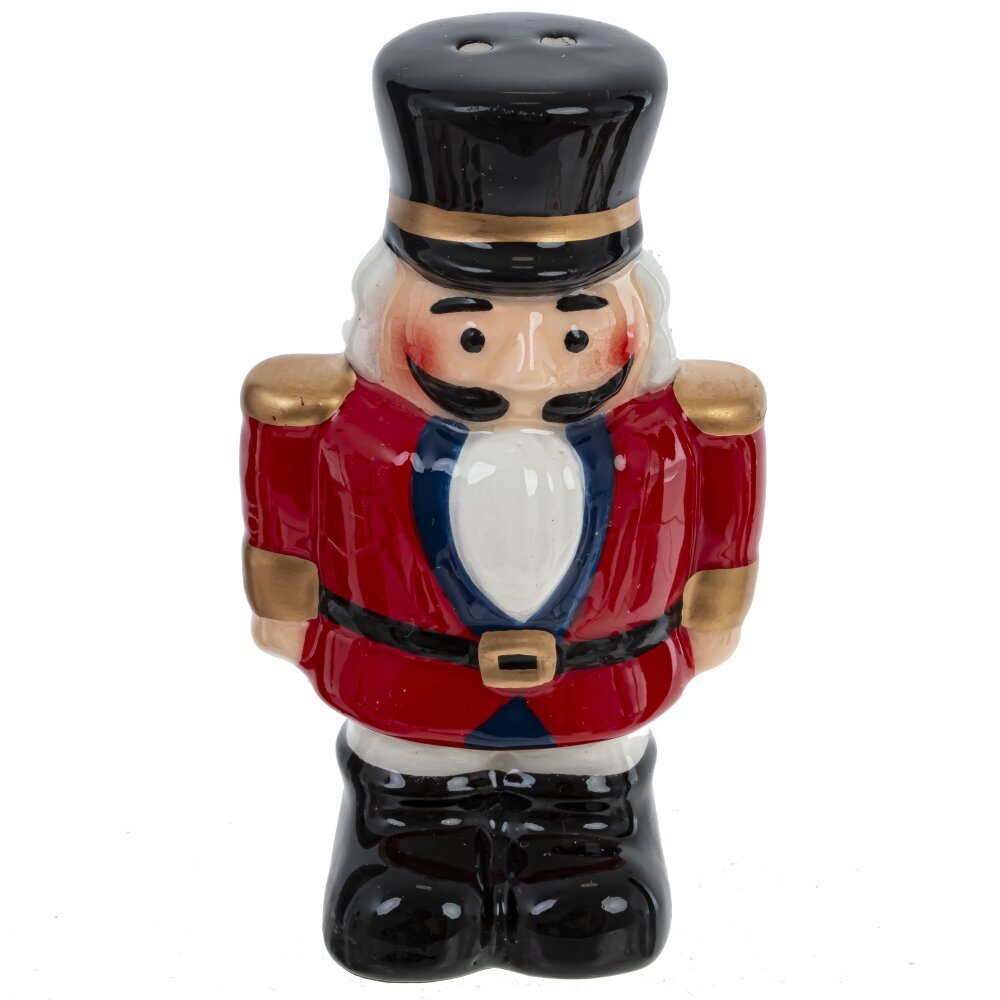 Новогодний набор для соли и перца "Щелкунчик" выполнен из керамики и покрыт глянцевой глазурью, которая придает ему приятный блеск. Он станет прекрасным дополнением к новогоднему столу, придавая интерьеру праздничный вид. Также может стать практичным и приятным подарком для друзей и близких.