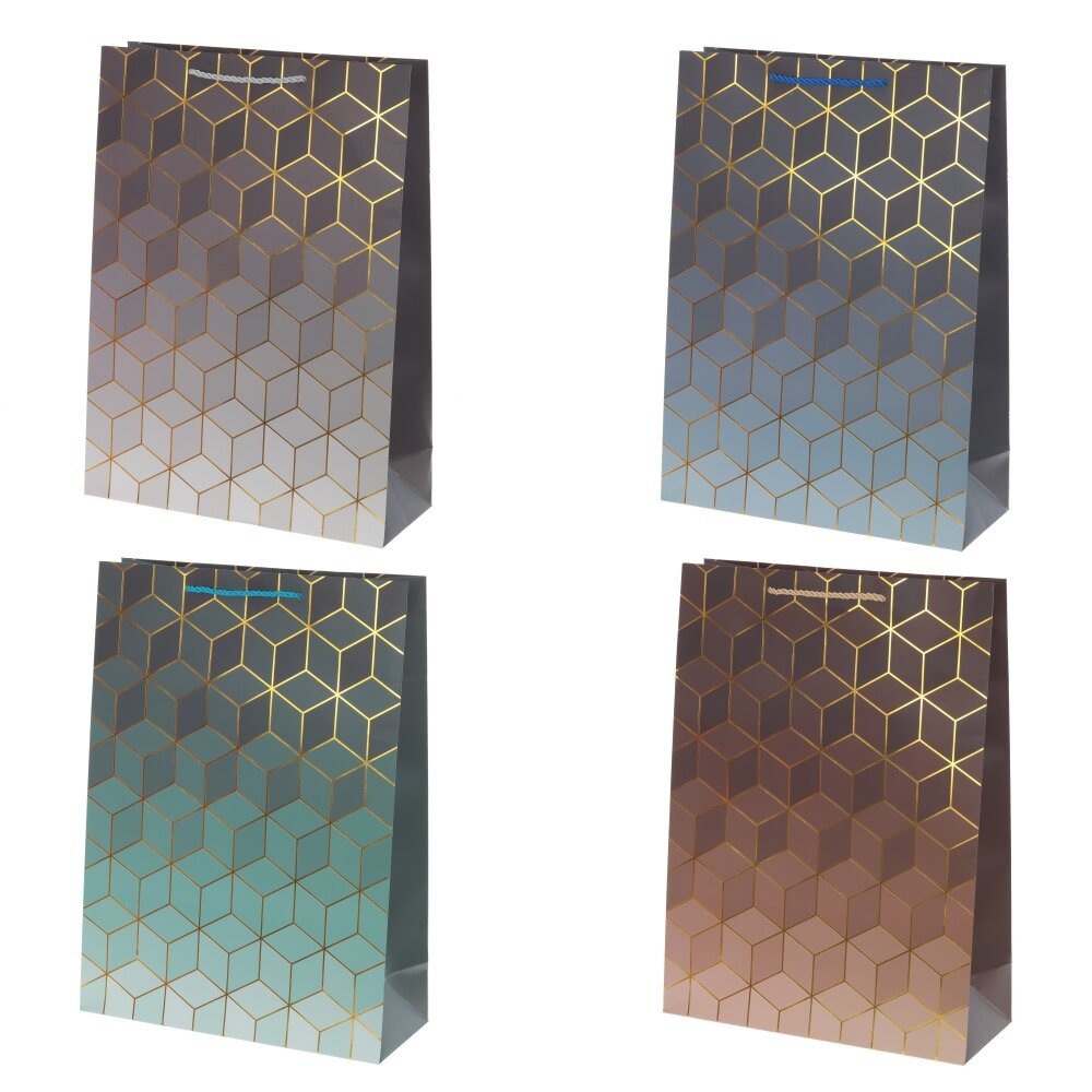 Оформите даже самый скромный подарок, положив его в нарядный пакет. Это не только сделает подарок более презентабельным, но также упростит его транспортировку. Бумажный пакет вместителен за счет широкого дна. Это позволит легко вложить в него упакованный в картонную коробку предмет. Плотность бумаги 210г/м2 гарантирует прочность и надежность упаковки. Кроме того, стильный дизайн пакета добавит нотку элегантности к вашему подарку, делая его привлекательным. Представлен в четырех вариантах. В блоке 12 шт (микс).