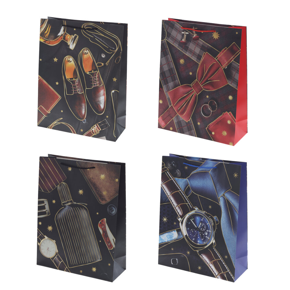 Оформите даже самый скромный подарок, положив его в нарядный пакет. Это не только сделает подарок более презентабельным, но также упростит его транспортировку. Бумажный пакет вместителен за счет широкого дна. Это позволит легко вложить в него упакованный в картонную коробку предмет. Плотность бумаги 210г/м2 гарантирует прочность и надежность упаковки. Кроме того, стильный дизайн пакета добавит нотку элегантности к вашему подарку, делая его привлекательным. Представлен в четырех вариантах. В блоке 12 шт (микс).