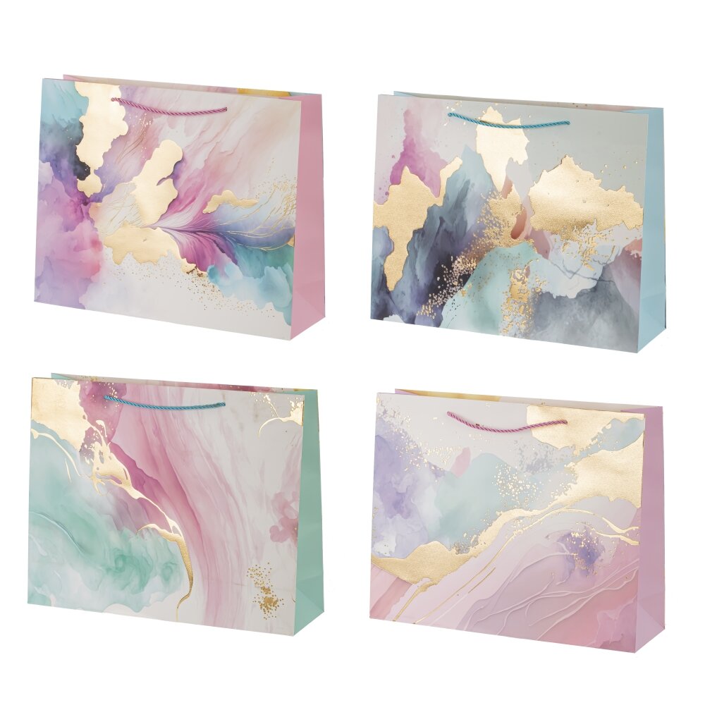 Оформите даже самый скромный подарок, положив его в нарядный пакет. Это не только сделает подарок более презентабельным, но также упростит его транспортировку. Бумажный пакет вместителен за счет широкого дна. Это позволит легко вложить в него упакованный в картонную коробку предмет. Плотность бумаги 210г/м2 гарантирует прочность и надежность упаковки. Кроме того, стильный дизайн пакета добавит нотку элегантности к вашему подарку, делая его привлекательным. Представлен в четырех вариантах. В блоке 12 шт (микс).