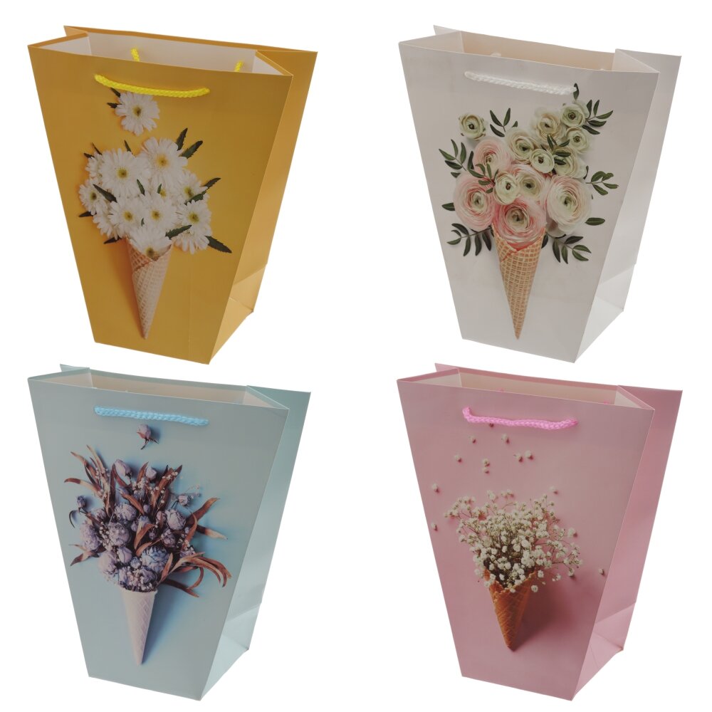 Оформите даже самый скромный подарок, положив его в нарядный пакет. Это не только сделает подарок более презентабельным, но также упростит его транспортировку. Бумажный пакет вместителен за счет широкого дна. Это позволит легко вложить в него упакованный в картонную коробку предмет. Плотность бумаги 210г/м2 гарантирует прочность и надежность упаковки. Кроме того, стильный дизайн пакета добавит нотку элегантности к вашему подарку, делая его привлекательным. Представлен в четырех вариантах. В блоке 12 шт (блок-1 вид).
