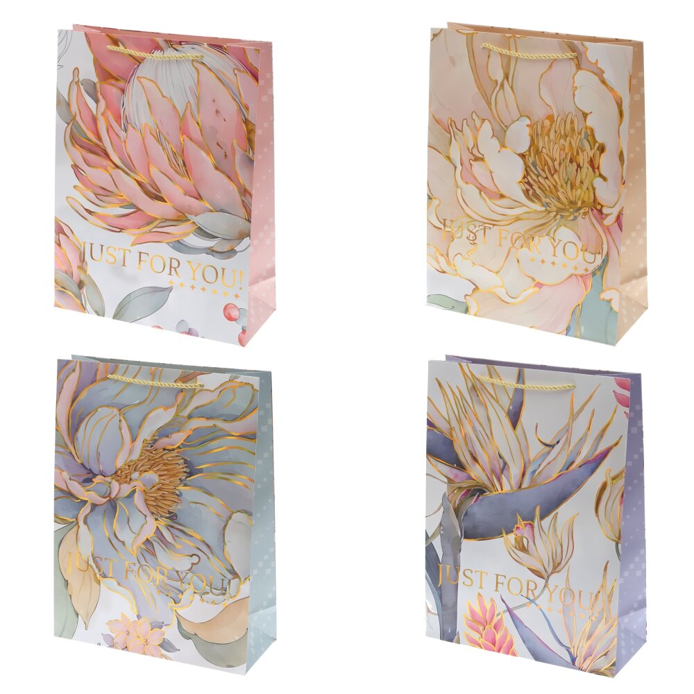 Оформите даже самый скромный подарок, положив его в нарядный пакет. Это не только сделает подарок более презентабельным, но также упростит его транспортировку. Бумажный пакет вместителен за счет широкого дна. Это позволит легко вложить в него упакованный в картонную коробку предмет. Плотность бумаги 210г/м2 гарантирует прочность и надежность упаковки. Кроме того, стильный дизайн пакета добавит нотку элегантности к вашему подарку, делая его привлекательным. Представлен в четырех вариантах. В блоке 12 шт (блок-1 вид).
