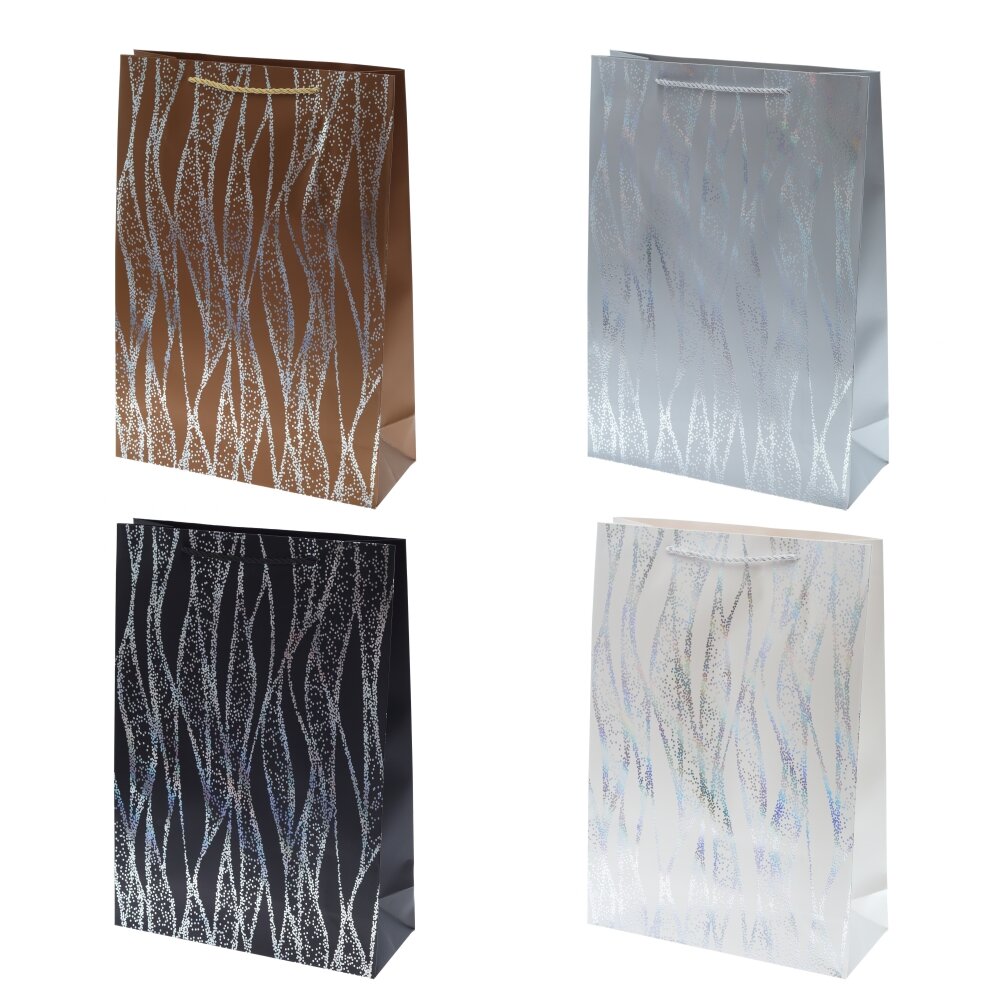 Оформите даже самый скромный подарок, положив его в нарядный пакет. Это не только сделает подарок более презентабельным, но также упростит его транспортировку. Бумажный пакет вместителен за счет широкого дна. Это позволит легко вложить в него упакованный в картонную коробку предмет. Плотность бумаги 210г/м2 гарантирует прочность и надежность упаковки. Кроме того, стильный дизайн пакета добавит нотку элегантности к вашему подарку, делая его привлекательным. Представлен в четырех вариантах. В блоке 12 шт (блок-1 вид).