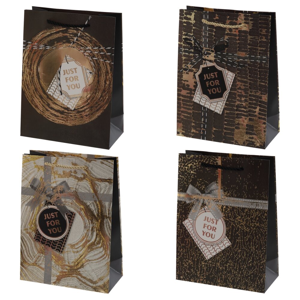 Оформите даже самый скромный подарок, положив его в нарядный пакет. Это не только сделает подарок более презентабельным, но также упростит его транспортировку. Бумажный пакет вместителен за счет широкого дна. Это позволит легко вложить в него упакованный в картонную коробку предмет. Плотность бумаги 210г/м2 гарантирует прочность и надежность упаковки. Кроме того, стильный дизайн пакета добавит нотку элегантности к вашему подарку, делая его привлекательным. Представлен в четырех вариантах. В блоке 12 шт (микс).