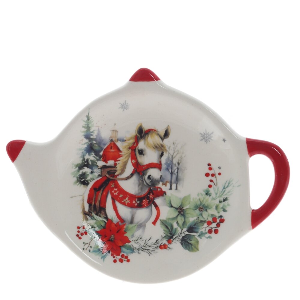 Подставка для чайных пакетиков с новогодним декором и символом 2026 года — изящной лошадкой — станет прекрасным дополнением праздничного интерьера или оригинальным подарком к Новому году. Изготовленная с вниманием к деталям, она украшена яркими зимними элементами: снежинками, веточками и праздничными акцентами, создающими волшебное настроение. Изделие упаковано в стильную подарочную коробку, что делает его готовым решением для подарка родным, коллегам или друзьям. Символ года — лошадка — символизирует силу, стремление вперёд и благополучие, придавая изделию особую смысловую ценность.