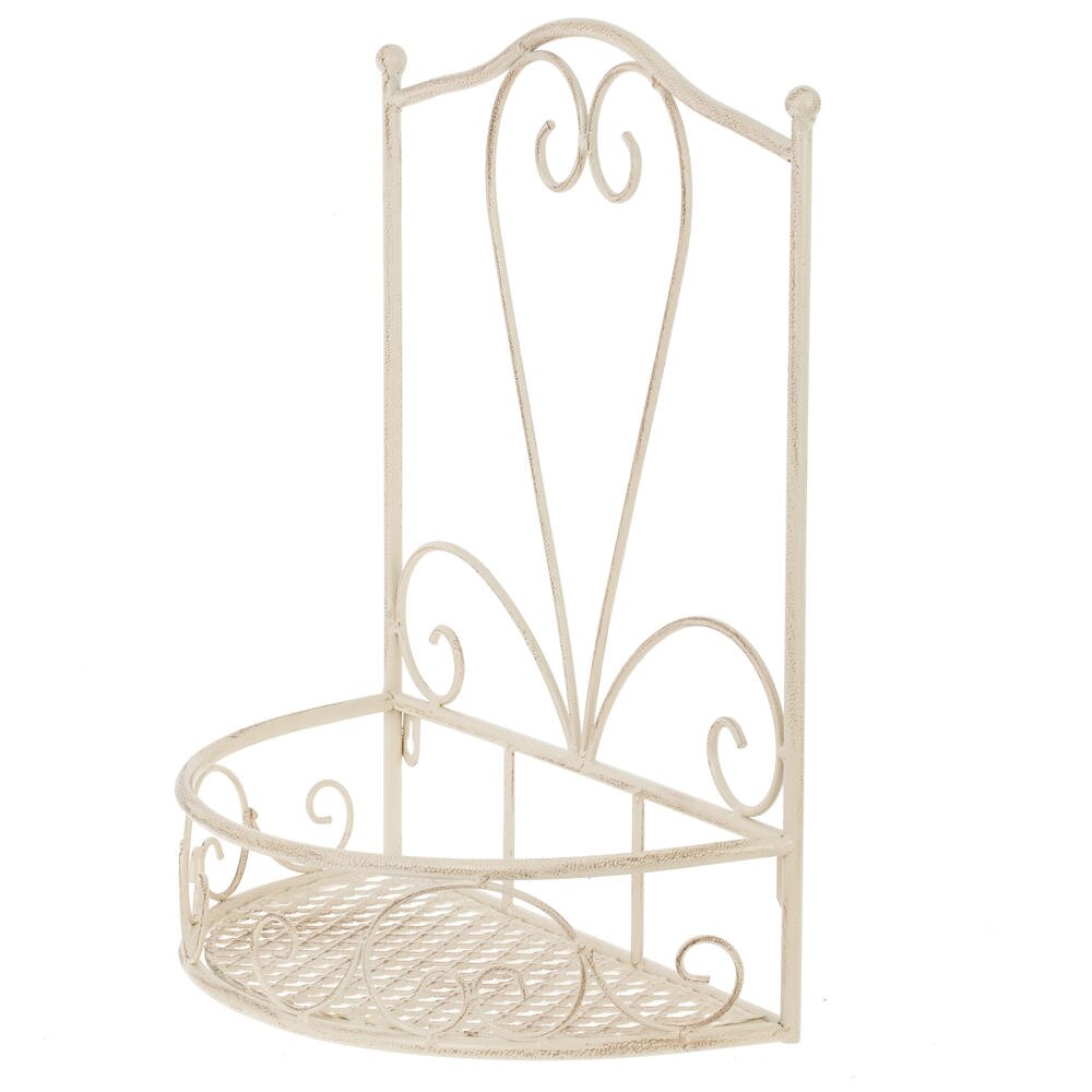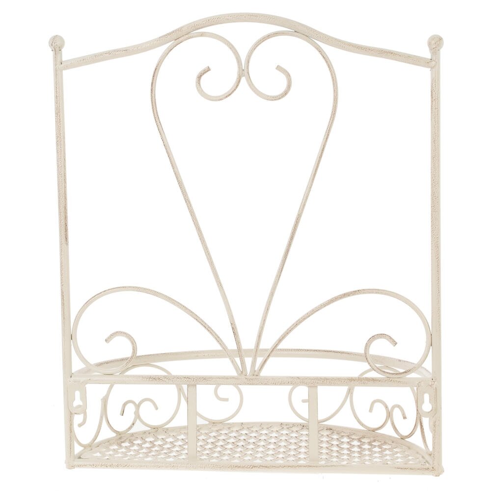 Настенная металлическая подставка для цветов в стиле прованс — изысканное решение для оформления интерьера или садового пространства. Изделие выполнено из прочного металла с античным кремовым покрытием, создающим эффект лёгкой потёртости и придающим подставке винтажный шарм.