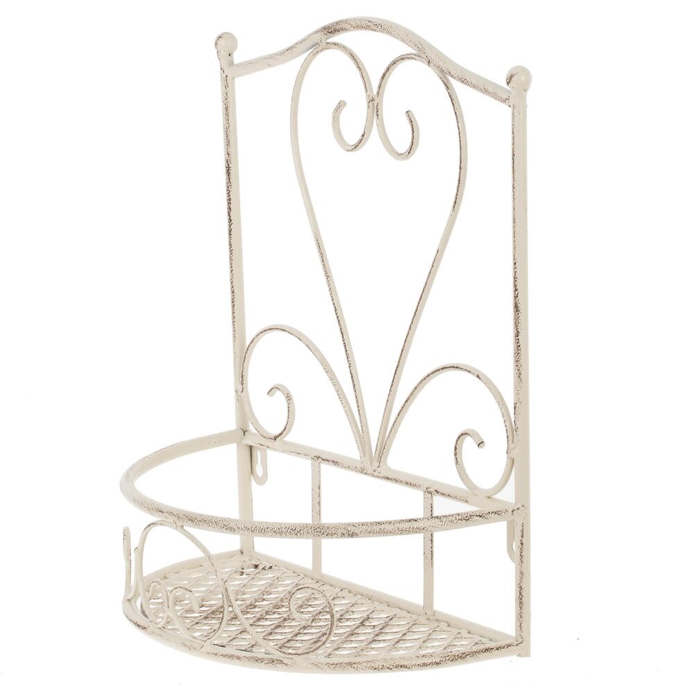 Настенная металлическая подставка для цветов в стиле прованс — изысканное решение для оформления интерьера или садового пространства. Изделие выполнено из прочного металла с античным кремовым покрытием, создающим эффект лёгкой потёртости и придающим подставке винтажный шарм. Дизайн украшен изящными завитками и ажурным плетением в нижней части, центральная часть оформлена симметричным орнаментом в виде сердца. Конструкция включает полку для размещения цветочных горшков и открытую зону для декора. Компактные размеры позволяют установить подставку на стене в гостиной, на веранде или балконе. Она подойдёт для размещения как небольших горшочных растений, так и декоративных аксессуаров. Сочетание функциональности и эстетики делает этот предмет универсальным элементом декора.
