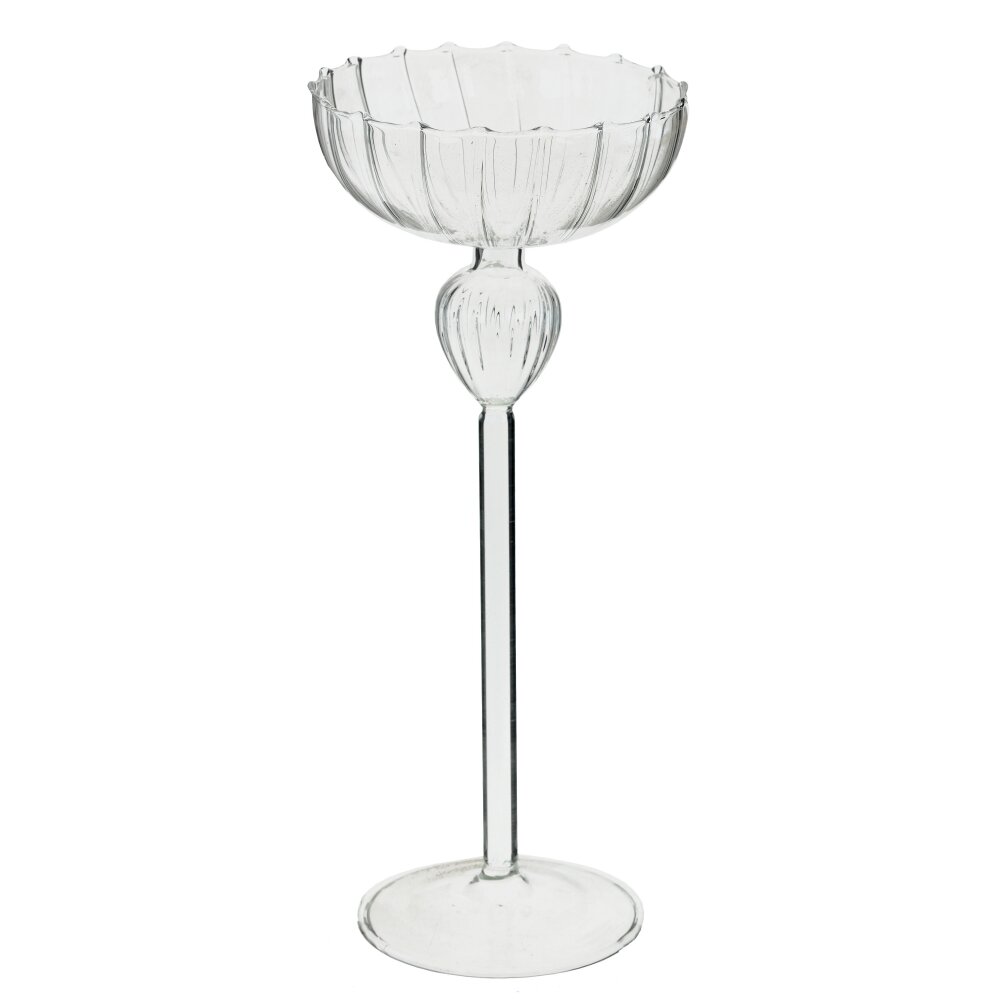Оригинальный и изысканный подсвечник для одной свечи позволит украсить интерьер Вашего дома. Изделие выполнено из стекла в форме фужера на длинной ножке. С таким элементом декора ужин при свечах наполнится торжественной и праздничной атмосферой. Диаметр свечи до 10 см