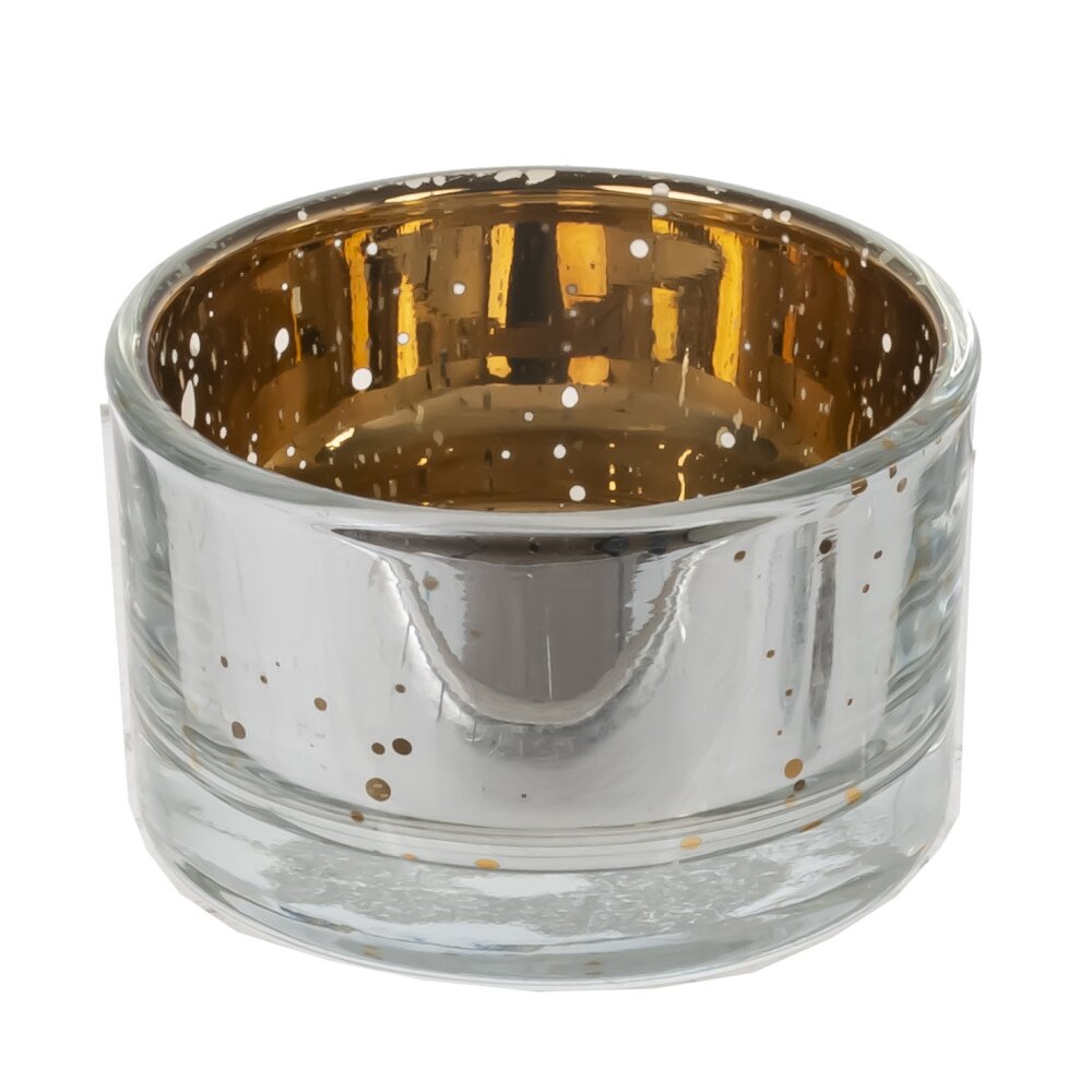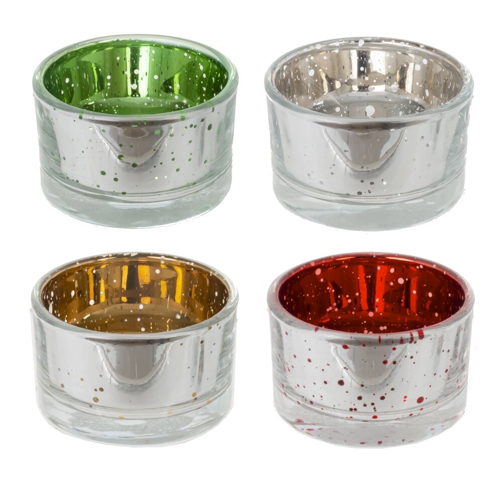 Этот элегантный подсвечник выполнен из прочного и прозрачного стекла с зеркальным серебристым покрытием и цветными акцентами внутри. Благодаря стильному дизайну и отражающей поверхности, подсвечник создает уютную атмосферу и красиво рассеивает свет свечи, наполняя вашу комнату мягким и теплым сиянием. Подходит для чайных свечей диаметром 4 см. Такой аксессуар прекрасно впишется в интерьер гостиной, спальни или праздничного стола, добавив нотку изящества и уюта. Также это отличный вариант для романтических вечеров или подарка близким людям. Легко моется и сохраняет свой блеск долгие годы. Представлено в четырех вариантах.