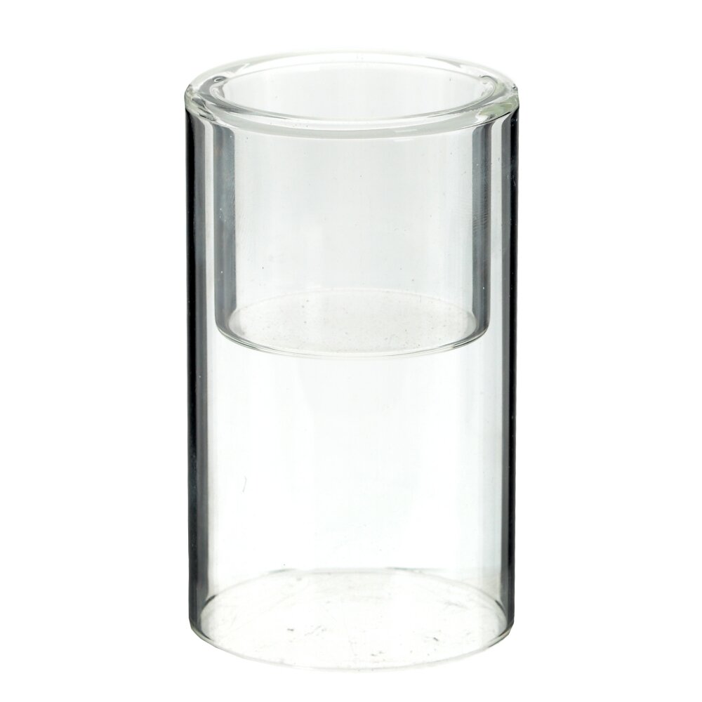 Оригинальный стеклянный подсвечник - прекрасный аксессуар для оформления праздничного стола. Он дополнит сервировку стола, подойдет для романтического вечера, или, просто украсит ваш дом. Диаметр свечи 5 см.