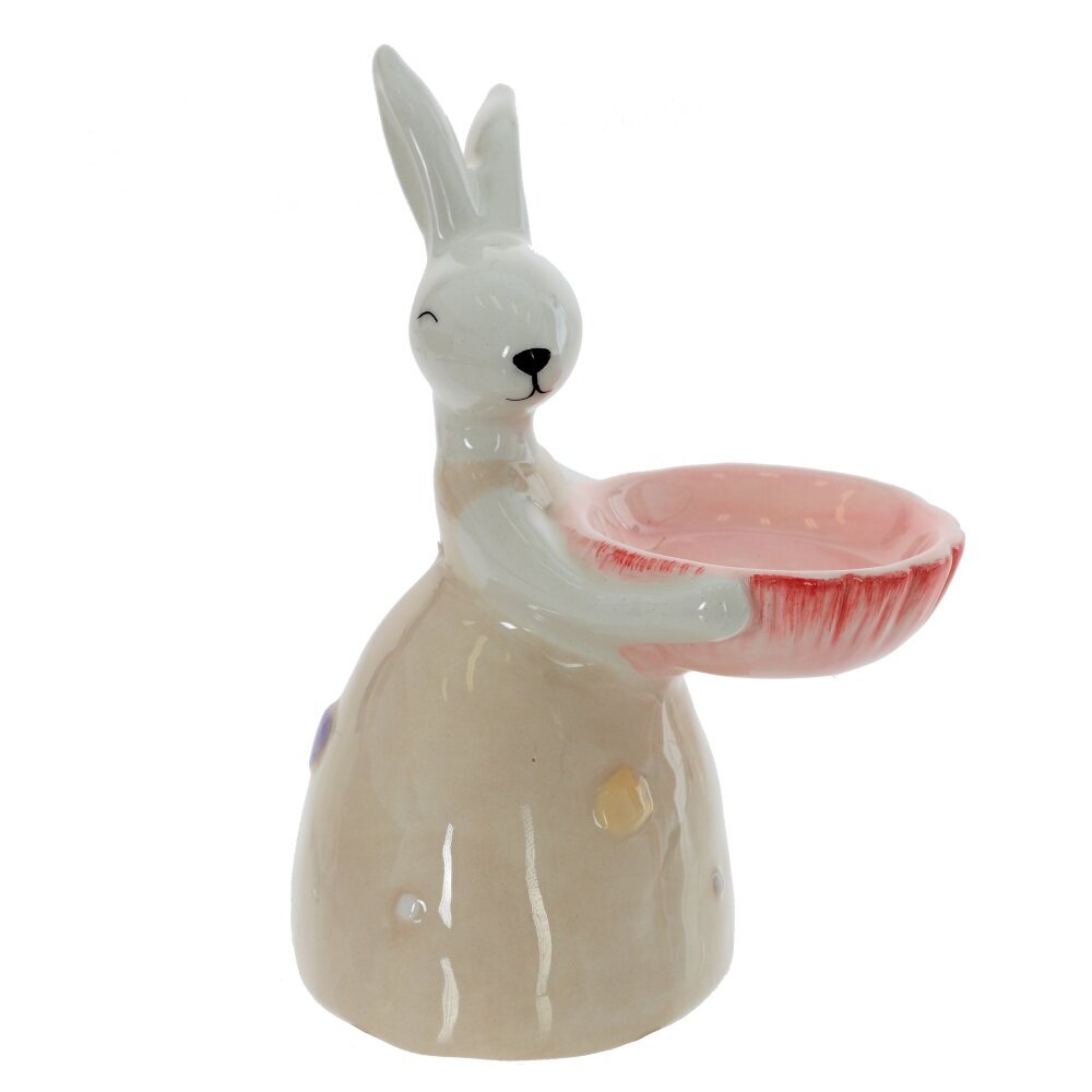 Этот очаровательный подсвечник в виде зайки станет изысканным акцентом вашего пасхального декора. Изготавливаемый из качественной керамики, подсвечник имеет размеры L7 W8,5 H11,5 см и гармонично сочетает в себе белый и розовый цвета, создавая нежную и уютную атмосферу. Разместив свечу , вы подарите своему интерьеру мягкий, теплый свет, который создаст атмосферу уюта и радости в этот светлый праздник. Зайка, одетая в симпатичное платье, привнесет нотку игривости и весеннего настроения в ваш дом, а также станет милым подарком для близких. Этот подсвечник идеально дополнит ваш праздничный стол или украсит полку в гостиной.