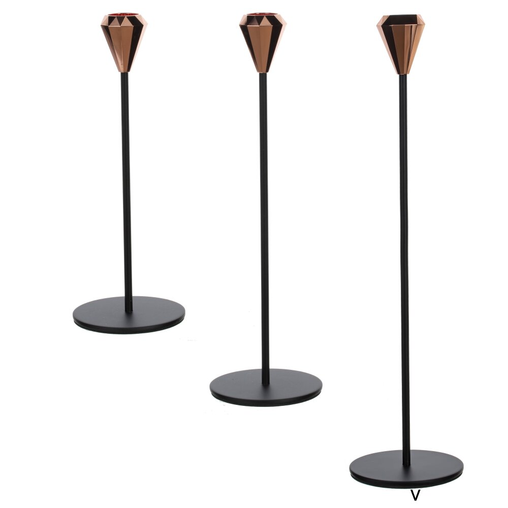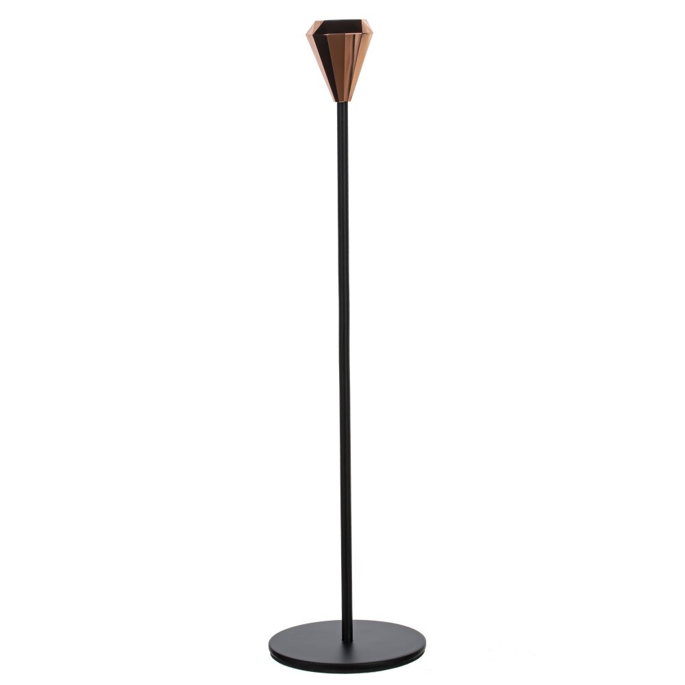 Оригинальный и изысканный металлический подсвечник для одной свечи в черно-бронзовых тонах на ножке позволит украсить интерьер Вашего дома. С таким элементом декора ужин при свечах наполнится торжественной и праздничной атмосферой. А также станет отличным подарком для ваших близких и друзей. Диаметр свечи 2.5 см