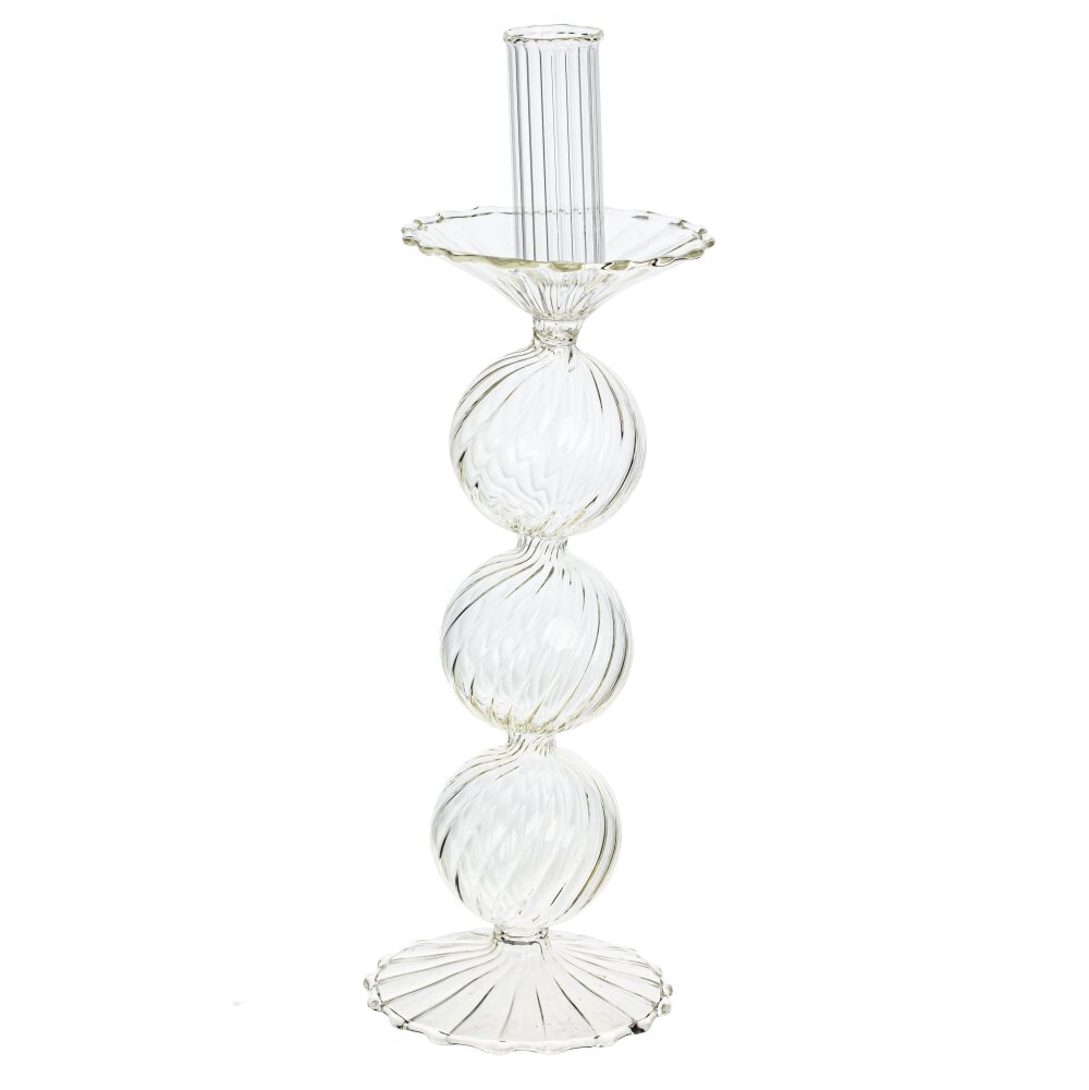 Оригинальный стеклянный подсвечник - прекрасный аксессуар для оформления праздничного стола. Он дополнит сервировку стола, подойдет для романтического вечера, или, просто украсит ваш дом. Диаметр свечи 2,5 см.