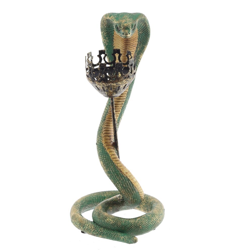Подсвечник "Змея" — это эффектный элемент декора, выполненный из качественного полистоуна. Дизайн подсвечника изображает змею-кобру, которая аккуратно удерживает подсвечник в хвосте. Подсвечник подойдет для свечи диаметром 5 см. Этот аксессуар не только функционален, но и станет ярким украшением вашего дома, создавая атмосферу уюта и праздника. Подсвечник "Змея" может стать отличным подарком для ценителей оригинального дизайна и любителей элементов, символизирующих богатство и мудрость.