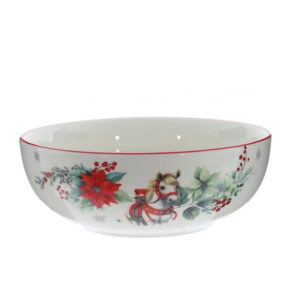 Праздничный новогодний салатник— стильный и эффектный элемент сервировки, созданный для особых моментов. Декорированный яркими новогодними элементами и символом 2026 года — лошадкой, он наполняет атмосферу стола теплом, уютом и праздничным настроением. Изготовленный из качественного материала, салатник сочетает в себе практичность и декоративную ценность. Упакован в красивую подарочную коробку, что делает его готовым решением для презента родным, друзьям или коллегам. Отличный выбор для тех, кто ценит стиль и символику в каждом элементе праздника.
