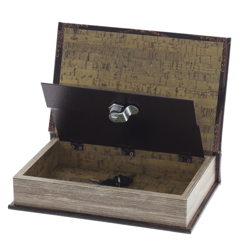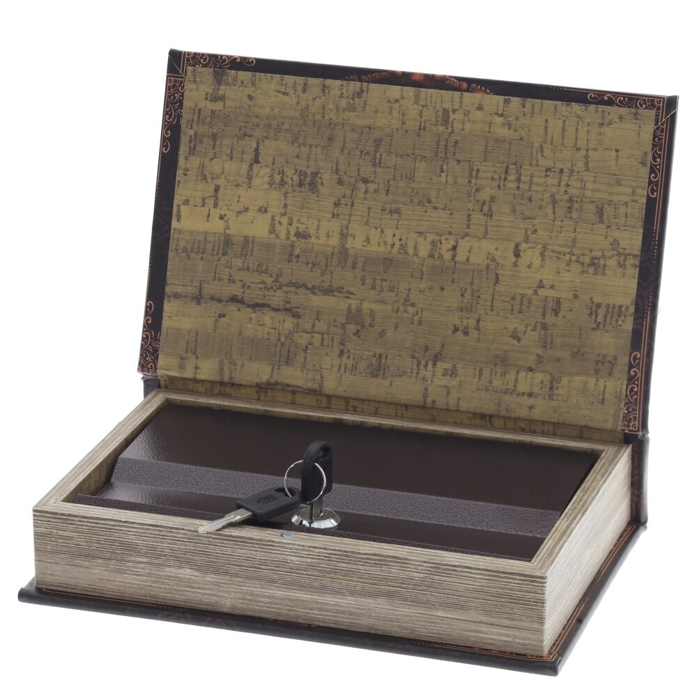 Шкатулка в форме книги с закрытием на ключ - это удивительная комбинация функциональности и стиля. Когда она закрыта, все, что находится внутри, защищается и сохраняется в секрете. Ее внешний вид будет соседствовать с другими книгами на вашей полке, не привлекая никакого внимания к своему секрету. Будучи не только функциональной, она обязательно станет прекрасным дополнением к вашему интерьеру.