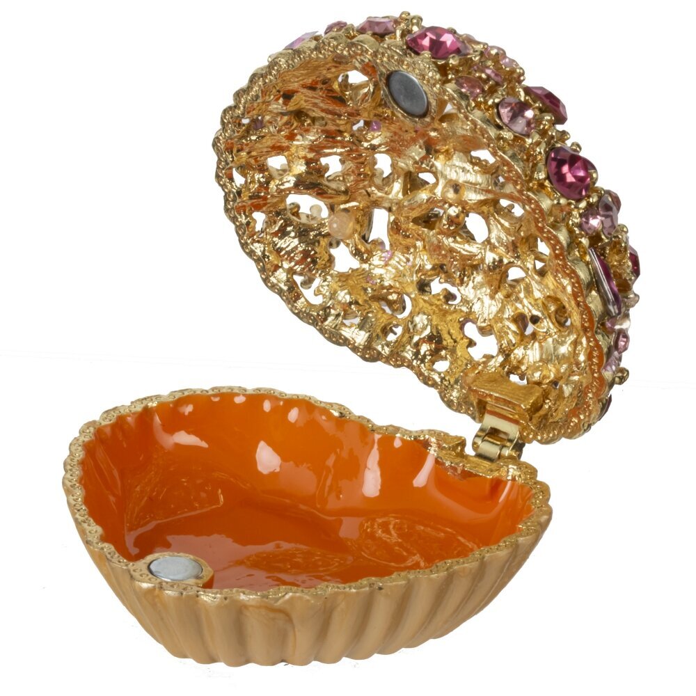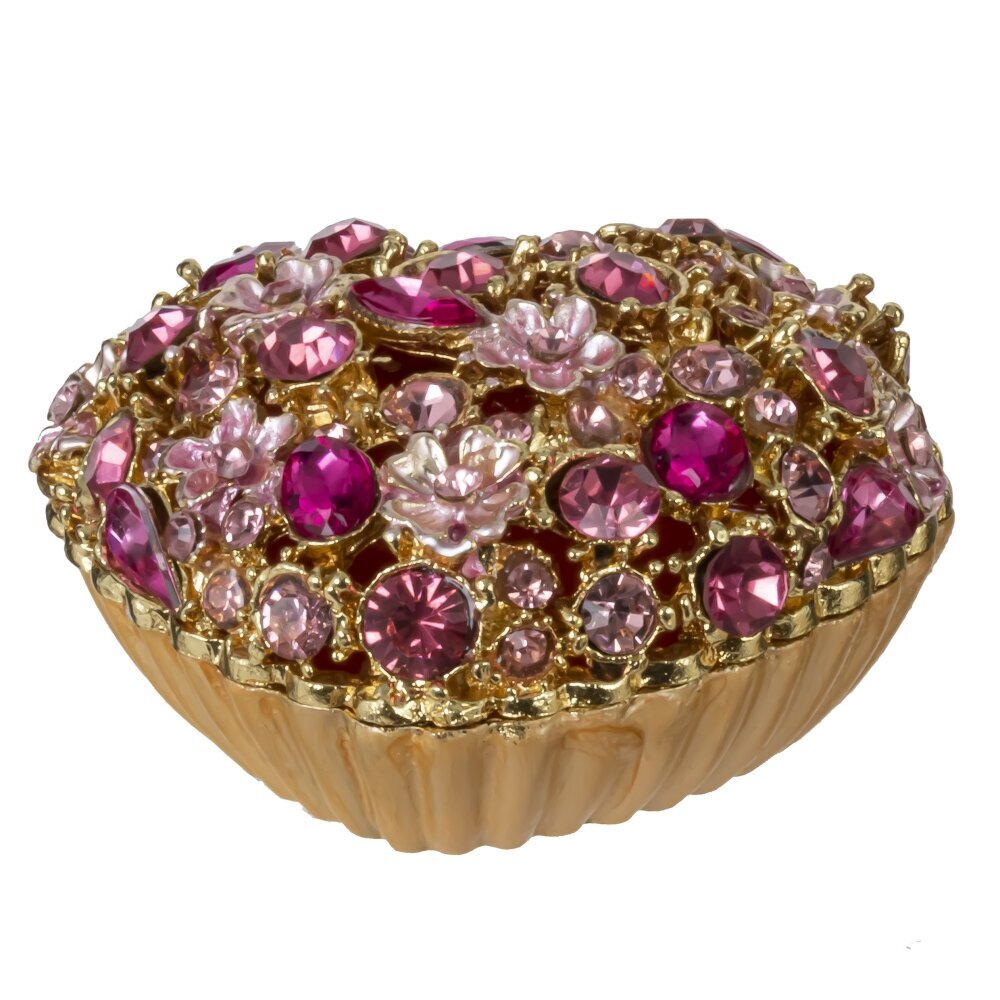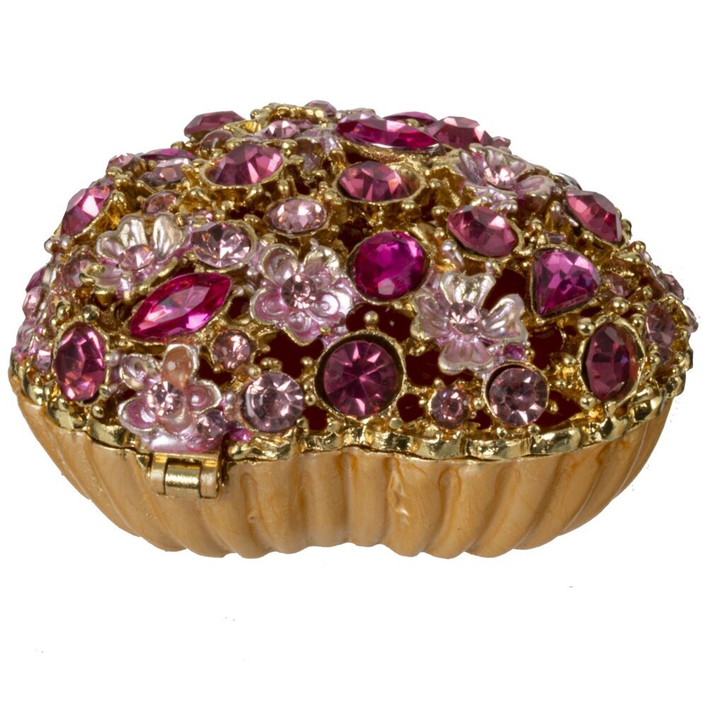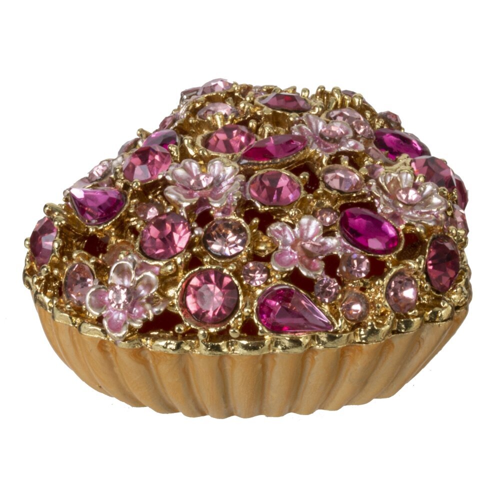 Шкатулка "Сердце" выполнена из металла и украшена стеклянными вставками, имитирующими драгоценные камни. Верх изделия богато декорирован крупными и мелкими стразами насыщенных розовых оттенков, а также изящными цветочными элементами, что придаёт ей романтичный и праздничный вид. Золотистая основа подчеркивает блеск и яркость стеклянных украшений, создавая ощущение утончённой роскоши. Такая шкатулка отлично подойдёт для хранения ювелирных украшений или других маленьких драгоценностей, а также станет изысканным подарком для близких. Ее оригинальный дизайн в форме сердца символизирует любовь и заботу, а обилие декоративных элементов делает ее настоящим украшением интерьера.