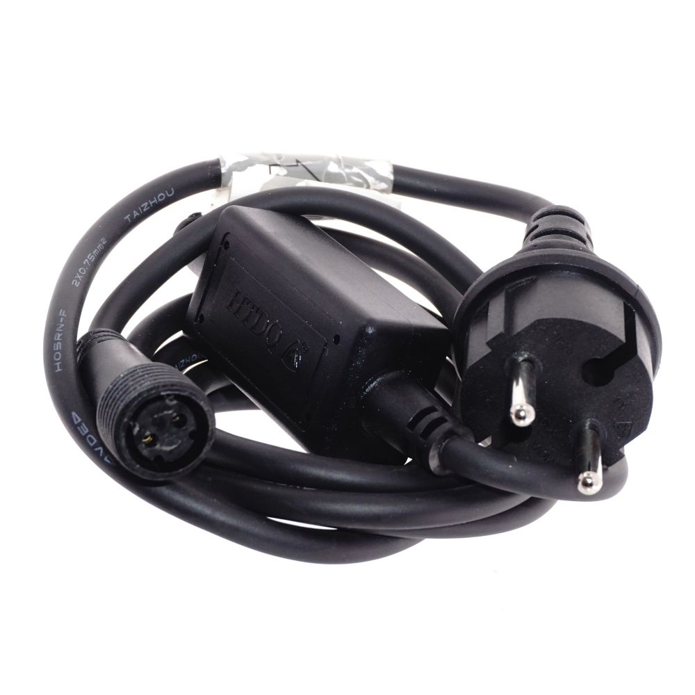 Шнур с адаптером и вилкой для уличной гирлянды. Длина провода: 1,5 м. Материал: каучук, черного цвета. Степень влагозащиты: IP44. Предназначен для использования на улице.