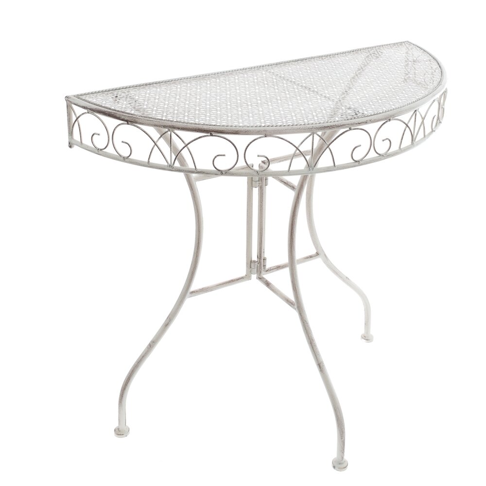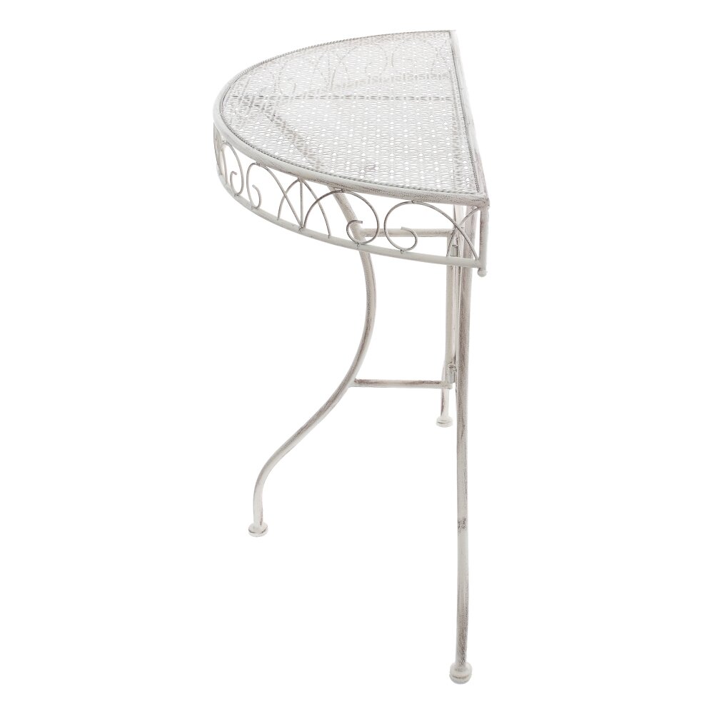 Этот изысканный стол выполнен из металла и отличается полукруглой формой, что позволяет удобно разместить его у стены или на балконе, экономя пространство. Размеры стола делают его компактным, но достаточно функциональным для повседневного использования. Благодаря ажурной поверхности и декоративным изогнутым элементам по краям, стол имеет винтажный и легкий внешний вид, который идеально впишется в интерьер в стиле прованс, ретро или лофт. Металлическая конструкция обеспечивает надежность и долговечность, устойчива к влаге, что позволяет использовать стол как в помещении, так и на улице. Элегантные изогнутые ножки придают изделию утонченность, а белый цвет подчеркнет свежесть и чистоту вашего пространства. Такой стол станет отличным выбором для чаепитий, украшения прихожей или украшения уютного уголка в саду.