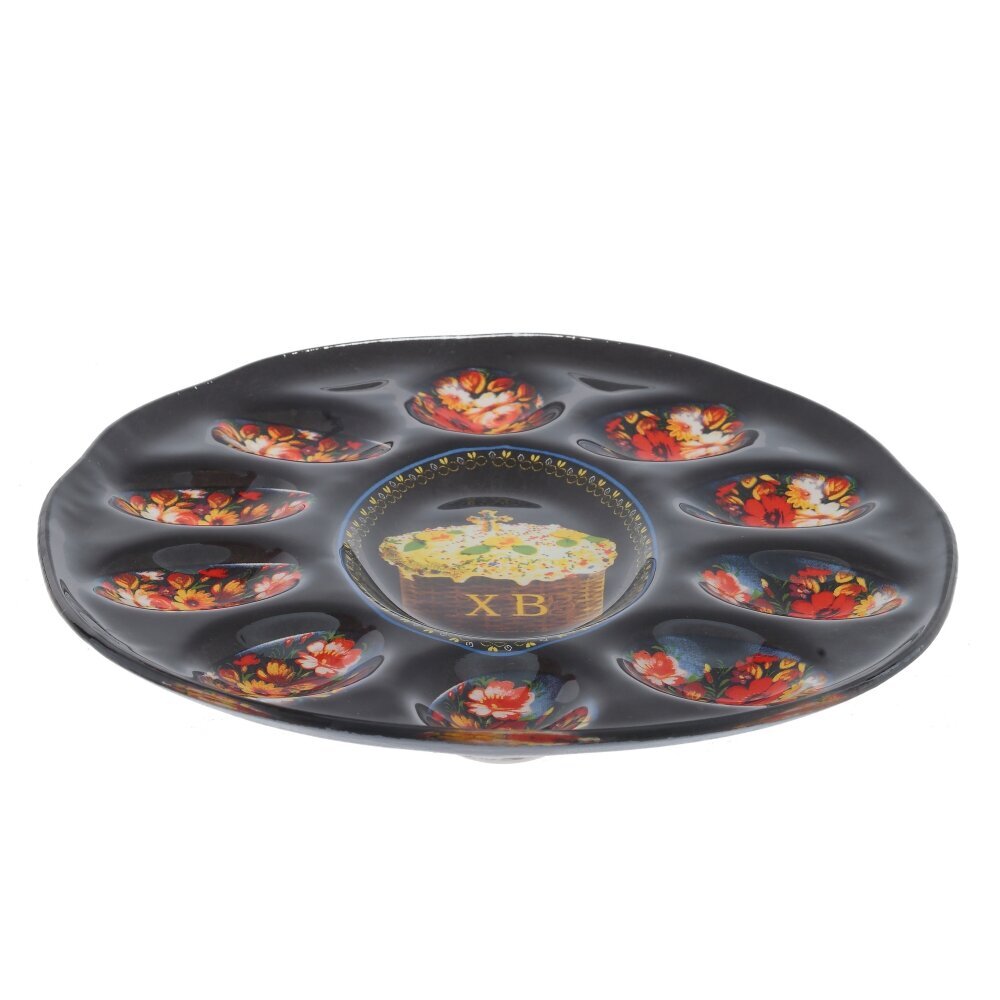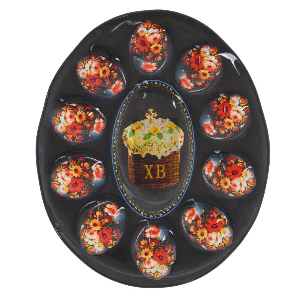 Эта привлекательная овальная тарелка идеально подходит для сервировки 10 яиц. Изготовленная из стекла, она добавляет элегантности любому столу. Ячейки для яиц украшены изящным красным цветочным рисунком, который придаёт изделию романтичный вид. В центре тарелки изображён кулич, символизирующий весенние праздники и семейные торжества. Данная тарелка не только практичная, но и стильная, делая оформление стола в особенные моменты незабываемым. Она станет прекрасным дополнением к пасхальному угощению или любому другому семейному обеду. Использование стекла гарантирует долговечность и лёгкость в уходе.