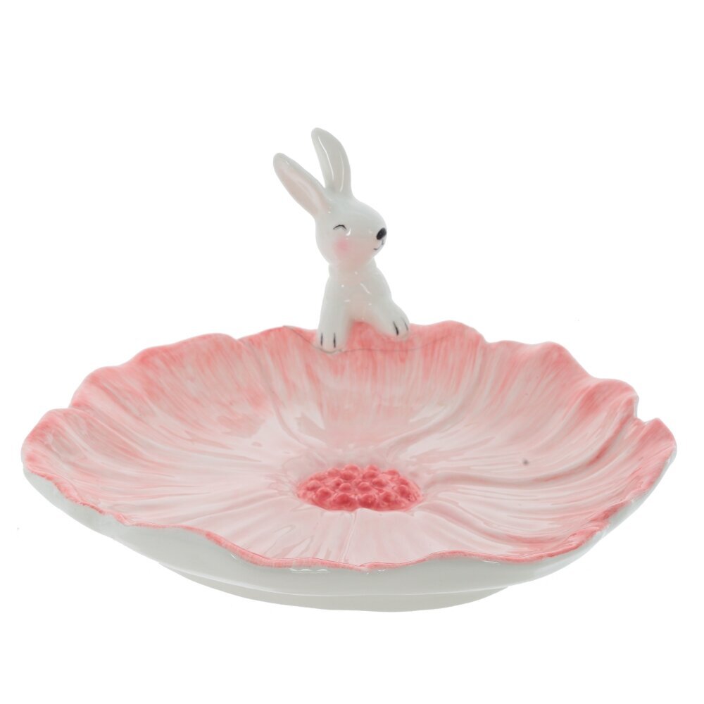 Эта очаровательная тарелка выполнена из керамики нежного розового цвета, что придает ей стильный и элегантный вид. На краю тарелки расположена изысканная фигурка белого зайца, символизирующая возрождение и весну. Эта тарелка станет прекрасным дополнением к праздничному столу, идеально подходя для сервировки угощений или десертов. Благодаря своему дизайну, она не только функциональна, но и выступает в роли украшения. Керамика легко очищается, что делает изделие практичным в повседневном использовании. Вы можете использовать её как для семейных встреч, так и для создания особой атмосферы во время праздников с друзьями. Эта тарелка станет замечательным подарком для людей, любящих оригинальные и стильные предметы интерьера. Ее утонченный дизайн и яркий цвет помогут создать радостное весеннее настроение, делая каждое застолье неповторимым.