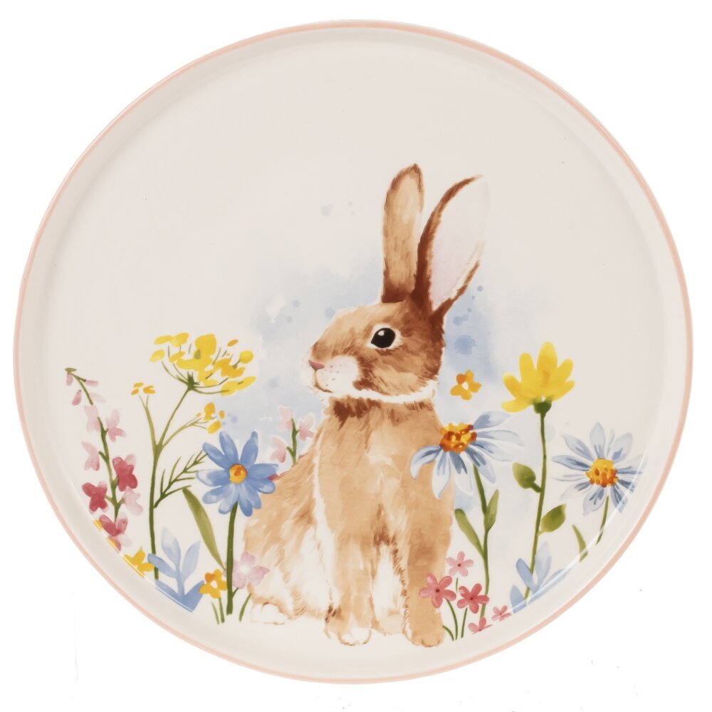 Эта керамическая тарелка станет прекрасным дополнением к пасхальному столу и украсит ваш дом весенним настроением. На её поверхности изображен очаровательный бежевый заяц, который весело расположился среди ярких желтых и голубых цветов. Дизайн тарелки вызывает ассоциации с радостью и возрождением, делая её идеальным атрибутом для празднования Пасхи. Узкие бортики тарелки гармонично подчеркивают центральный рисунок, создавая эффект глубины и объемности. Эта тарелка подойдет для подачи закусок, десертов или может использоваться как декоративный элемент. Она станет отличным подарком для друзей и близких, которые ценят стильные и уникальные предметы. Праздничное оформление вашего стола будет завершено благодаря этой тарелке, которая привнесёт тепло и уют в любой дом.