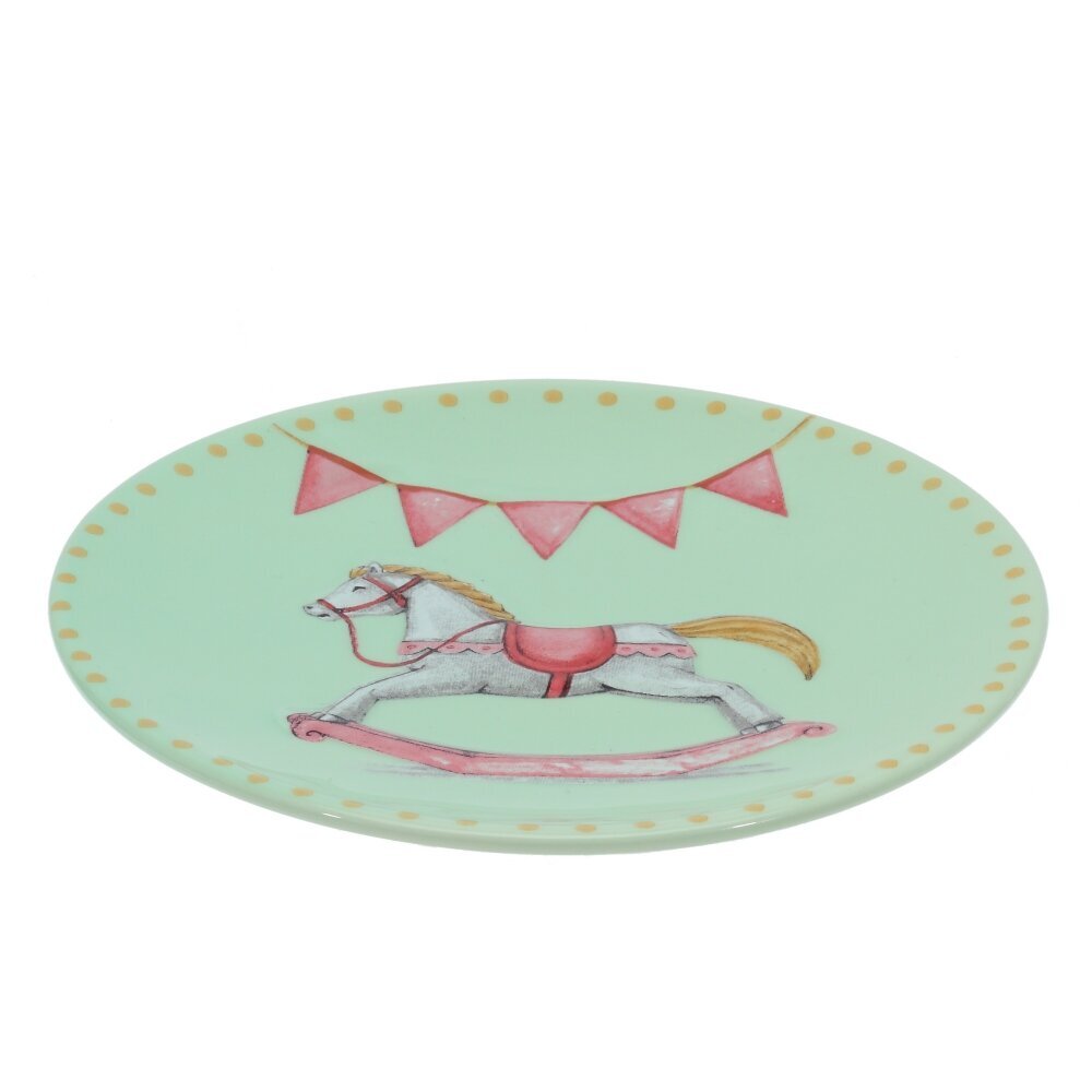 Керамическая тарелка с изображением лошадки-качалки — это не просто предмет сервировки, а настоящее украшение стола. Очаровательный рисунок с лошадкой вызывает ассоциации с детством, теплом и уютом, создавая особую атмосферу за каждым приёмом пищи. Изготовленная из прочной керамики, тарелка идеально подходит для подачи завтраков, десертов, выпечки или фруктов. Поверхность гладкая, легко очищается, а качественная глазурь сохраняет яркость рисунка надолго. Такая посуда особенно уместна в сервировке праздничного или детского стола, а также может использоваться как декоративный элемент интерьера. Прекрасно подойдёт в подарок на Новый год, день рождения или просто как приятный сувенир.