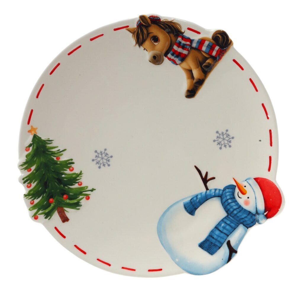 Праздничная новогодняя тарелка — стильный и эффектный элемент сервировки, созданный для особых моментов. Декорированная яркими новогодними элементами, такими как нарядная ёлочка и символ 2026 года — лошадка, она наполняет атмосферу стола теплом, уютом и праздничным настроением. Изготовленная из качественного материала, тарелка сочетает в себе практичность и декоративную ценность. Идеально подойдёт для подачи угощений, сладостей или как самостоятельный элемент декора. Упакована в красивую подарочную коробку, что делает её готовым решением для презента родным, друзьям или коллегам. Отличный выбор для тех, кто ценит стиль и символику в каждом элементе праздника.