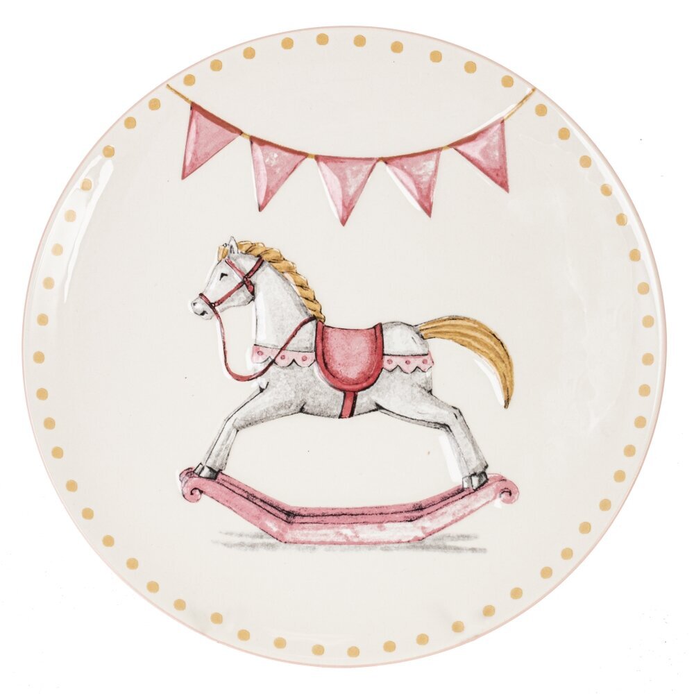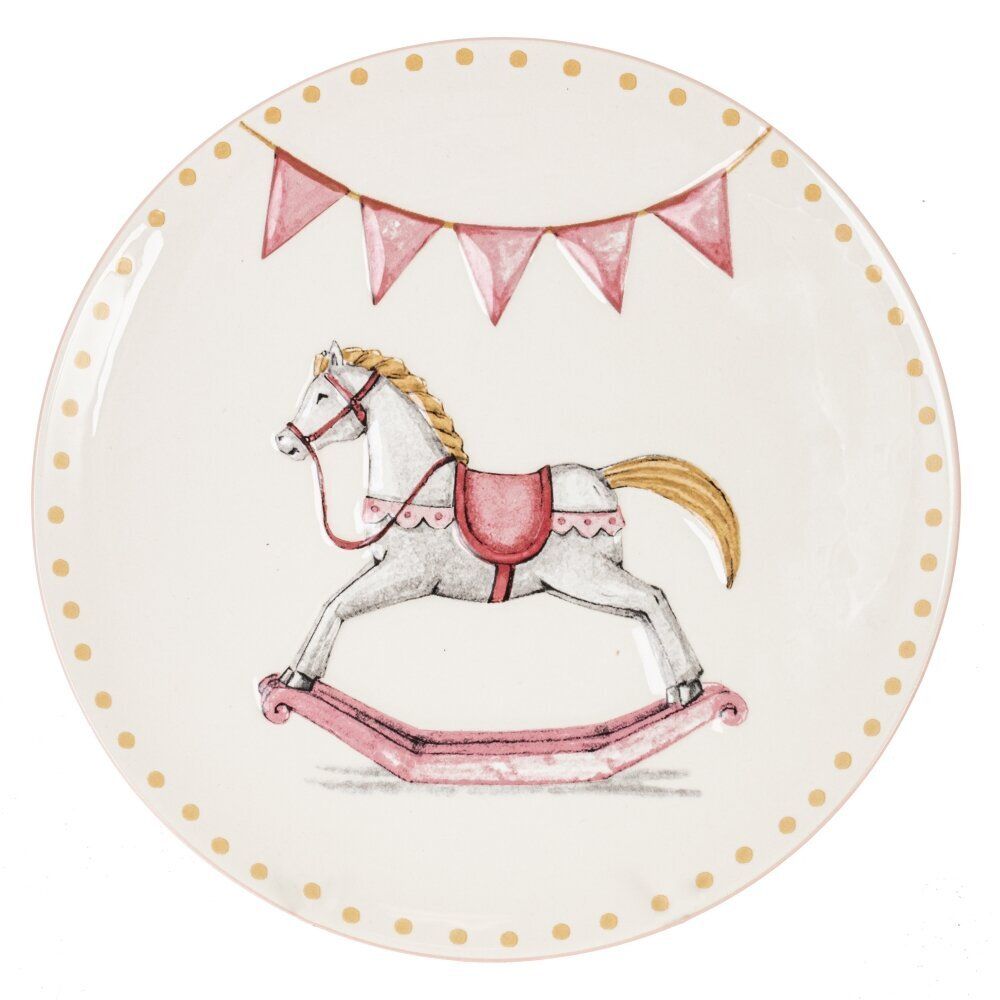 Керамическая тарелка с изображением лошадки-качалки — это не просто предмет сервировки, а настоящее украшение стола. Очаровательный рисунок с лошадкой вызывает ассоциации с детством, теплом и уютом, создавая особую атмосферу за каждым приёмом пищи. Изготовленная из прочной керамики, тарелка идеально подходит для подачи завтраков, десертов, выпечки или фруктов. Поверхность гладкая, легко очищается, а качественная глазурь сохраняет яркость рисунка надолго. Такая посуда особенно уместна в сервировке праздничного или детского стола, а также может использоваться как декоративный элемент интерьера. Прекрасно подойдёт в подарок на Новый год, день рождения или просто как приятный сувенир.