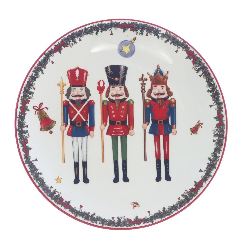 Тарелка с чудесным Рождественским принтом порадует всех Ваших гостей. Тарелка из серии посуды "Щелкунчик", изготовлена из керамики.