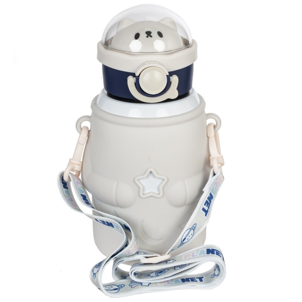 Оригинальная бутылка объёмом 500 мл, выполненная из прочных и безопасных полимерных материалов. Её дизайн вдохновлён темой космоса: корпус бутылки оформлен в виде милого животного-астронавта с прозрачным куполом-шлемом, под которым видна мордочка зверька. Дополнением служит декоративная звезда на передней части и стильный ремешок с надписью "PLANET" и рисунками на космическую тематику, что делает бутылку не только функциональной, но и привлекательной для детей и подростков. Удобный ремешок позволяет носить аксессуар на плече или через плечо, а ёмкость и лёгкость делают её отличным выбором для прогулок, школы или активного отдыха. Такая бутылка станет не только практичным, но и ярким аксессуаром, подчёркивающим индивидуальность владельца.