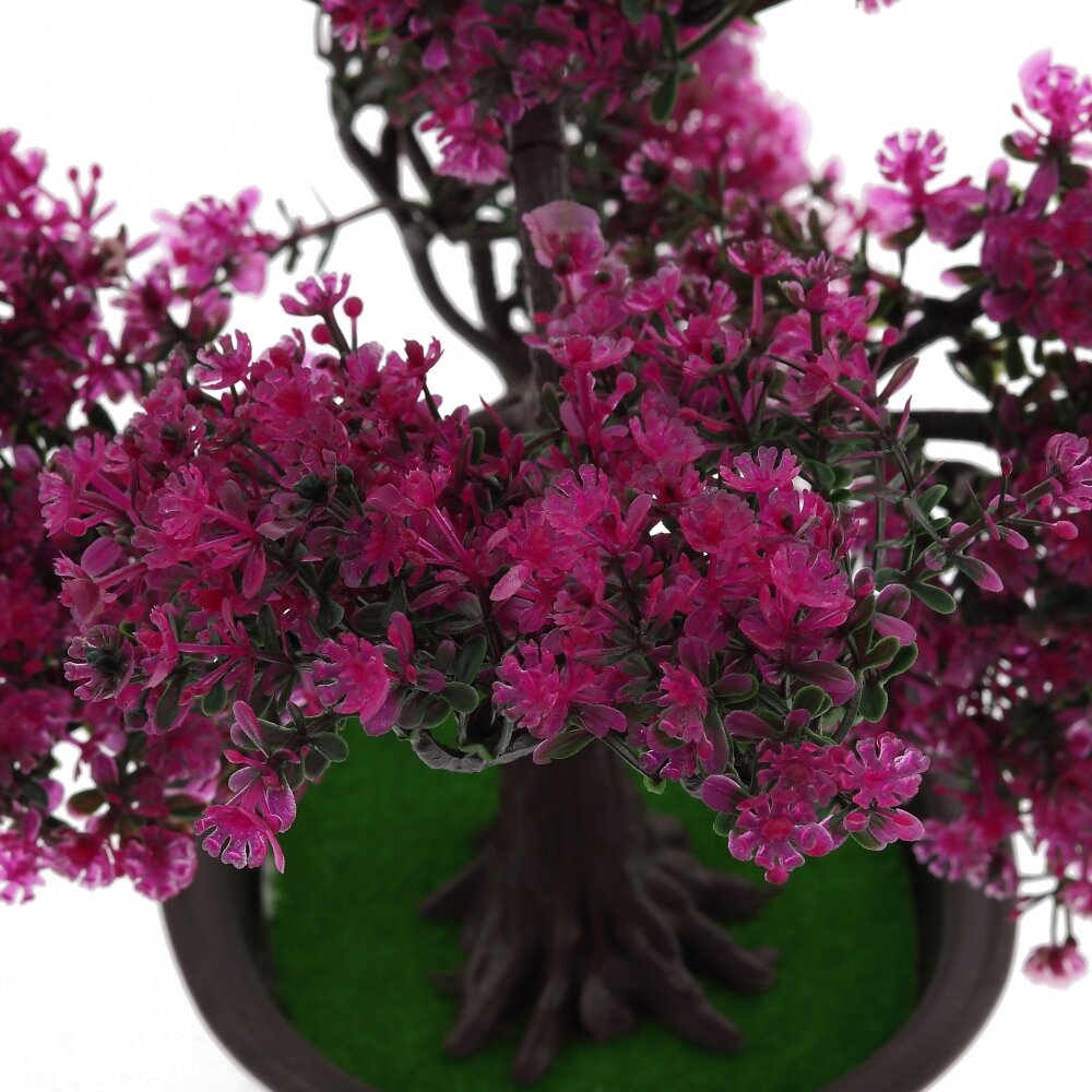 Искусственная цветочная композиция «Бонсай» – изящный декоративный акцент для любого интерьера. Миниатюрное деревце с пышной кроной нежно?розовых соцветий и тонкой проработкой веточек выглядит как живое, но не требует полива и особого ухода. Композиция установлена в аккуратный овальный горшок с имитацией зеленого мха, что подчеркивает натуральный вид растения. Такой «Бонсай» легко впишется в офис, гостиную, спальню или зону приема гостей, создавая атмосферу уюта и гармонии. Идеально подходит в качестве подарка тем, кто ценит красоту цветов, но не имеет возможности ухаживать за живыми растениями.