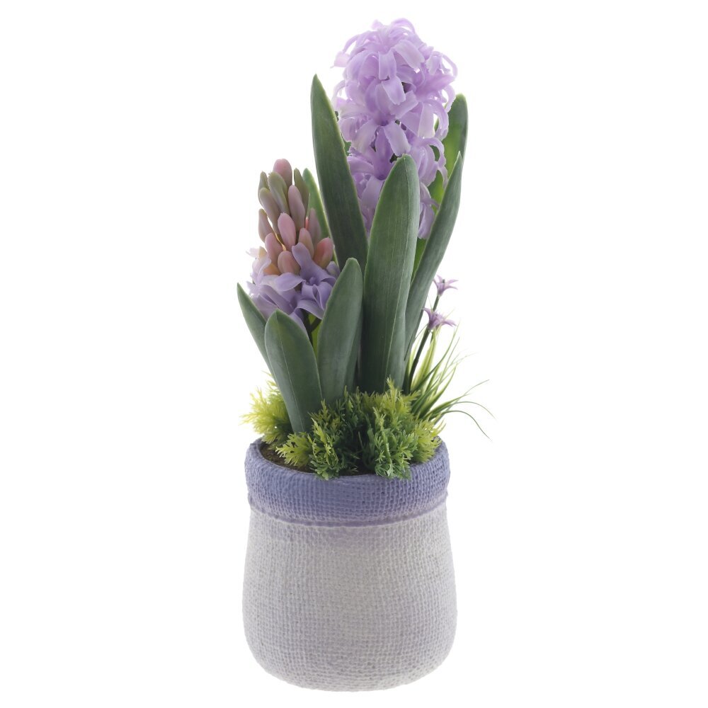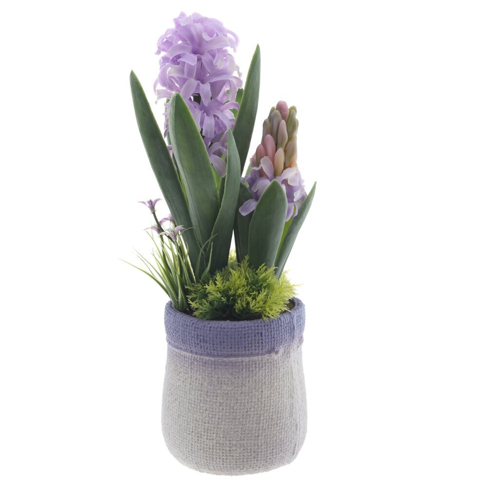 Эта искусственная цветочная композиция "Гиацинты" представляет собой стильное декоративное украшение для дома или офиса. Компактный горшок с имитацией тканевой текстуры придаёт изделию натуральный вид, а зелёные стебли создают ощущение свежести. Композиция выполнена из качественного полимерного материала, что делает её долговечной и неприхотливой в уходе. Она станет отличным дополнением к интерьеру, добавляя уют и природные акценты в любой уголок помещения. Не требует полива и бережного ухода, оставаясь привлекательной в любое время года.