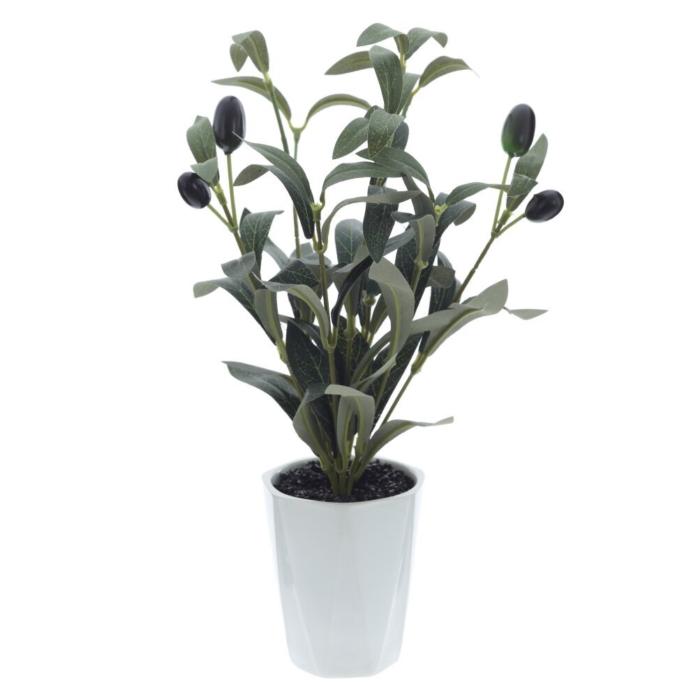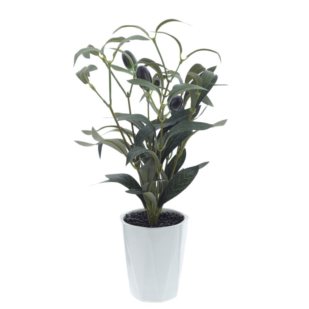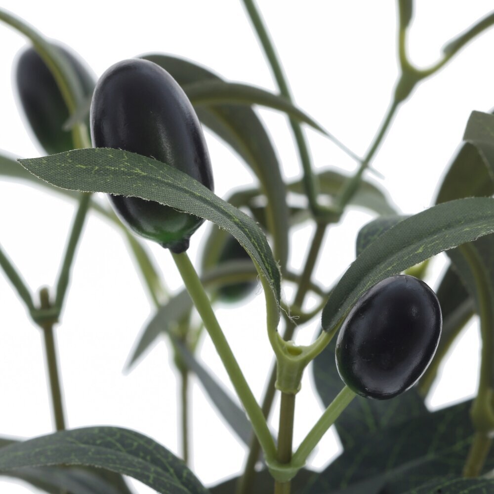 Искусственное дерево "Олива" представлено в изящном белом фарфоровом горшке и станет отличным элементом декора для любого интерьера — дома, офиса или кафе. Листья и ветви растения выполнены из текстильных и полимерных материалов, что придаёт изделию максимально натуральный и эстетичный вид. Тёмные декоративные плоды, имитирующие настоящие оливки, гармонично сочетаются с зелёной листвой и создают атмосферу уюта и свежести. Такое искусственное дерево не требует ухода, не теряет форму и цвет со временем, и может радовать своей красотой круглый год. Благодаря долговечным и качественным материалам оно идеально подходит для оформления пространства, где невозможно разместить живые растения.